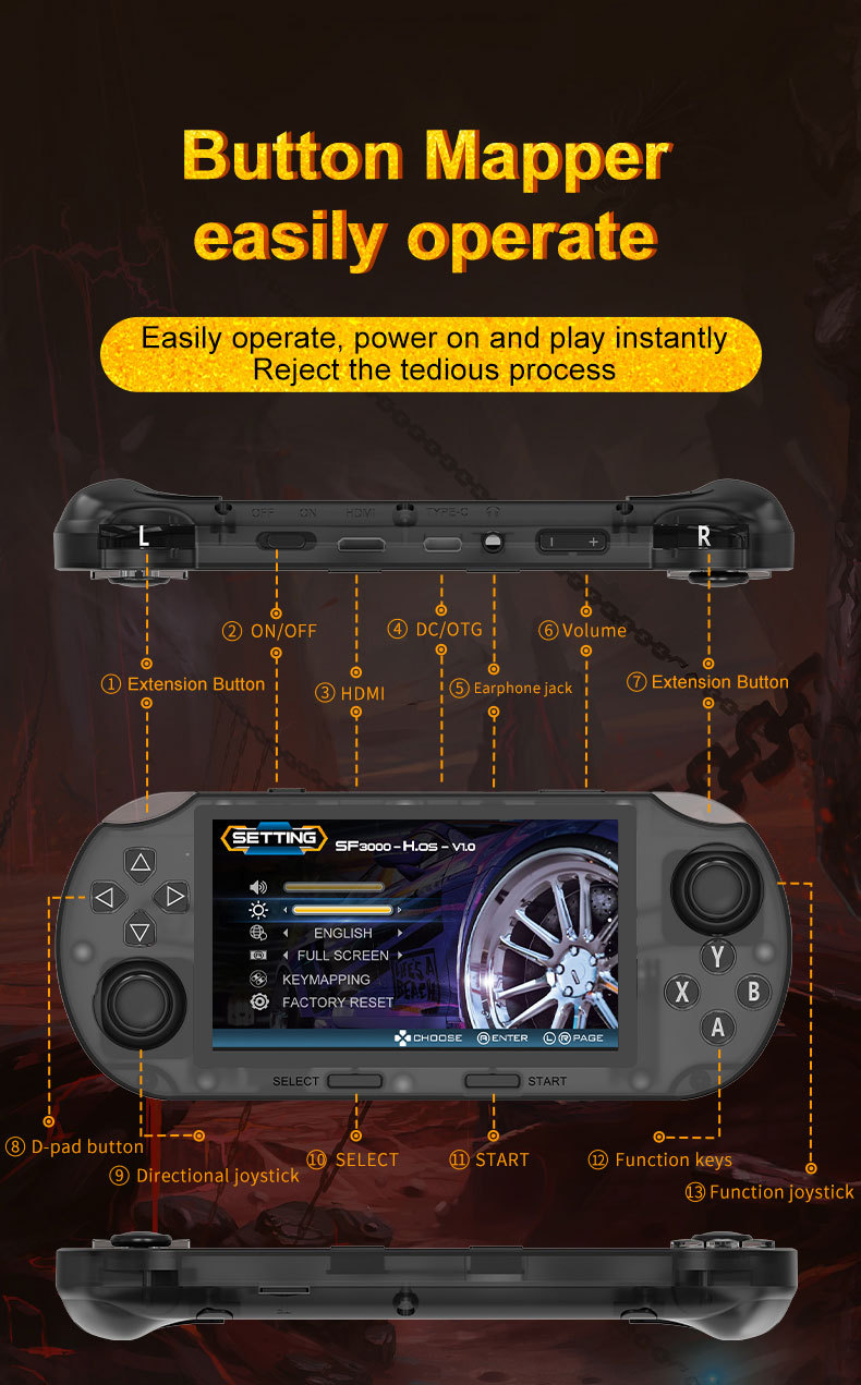 국경 폭발 SF3000 게임 기계 오픈 소스 핸드 헬드 향수 레트로 아케이드 새로운 휴대용 핸드 헬드 게임 기계