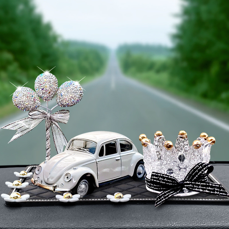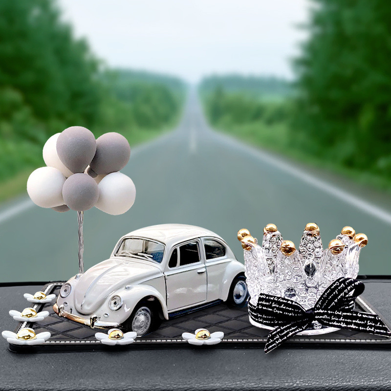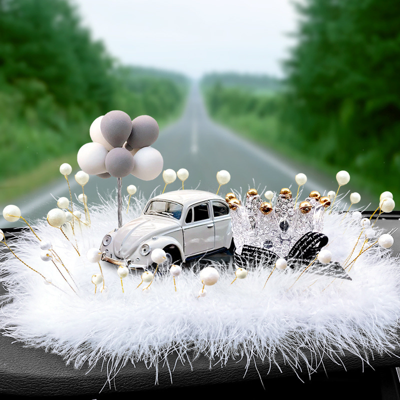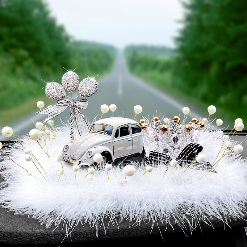 • 왕관 + 화이트 다이아몬드 풍선 + 화이트 자동차 + 대형 진주 쿠션