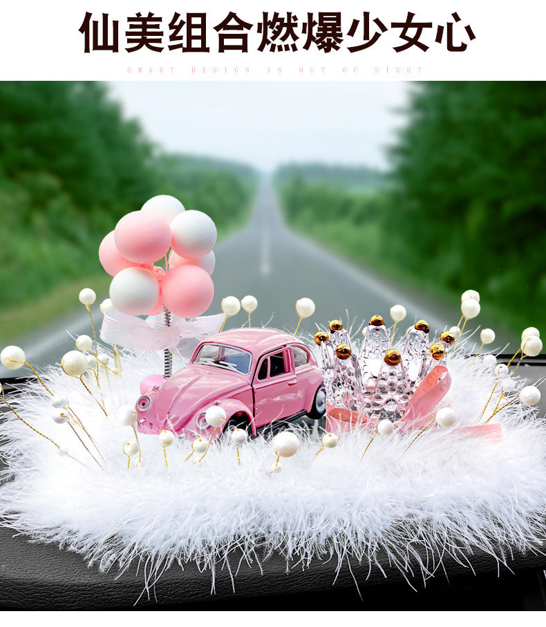 • 핑크 크라운 + 핑크 스윙 풍선 + 핑크 자동차 + 대형 진주 쿠션
