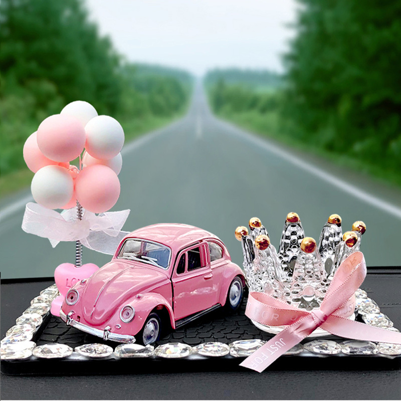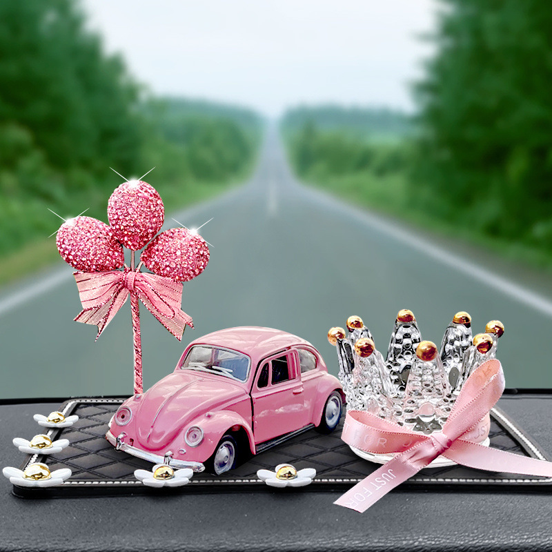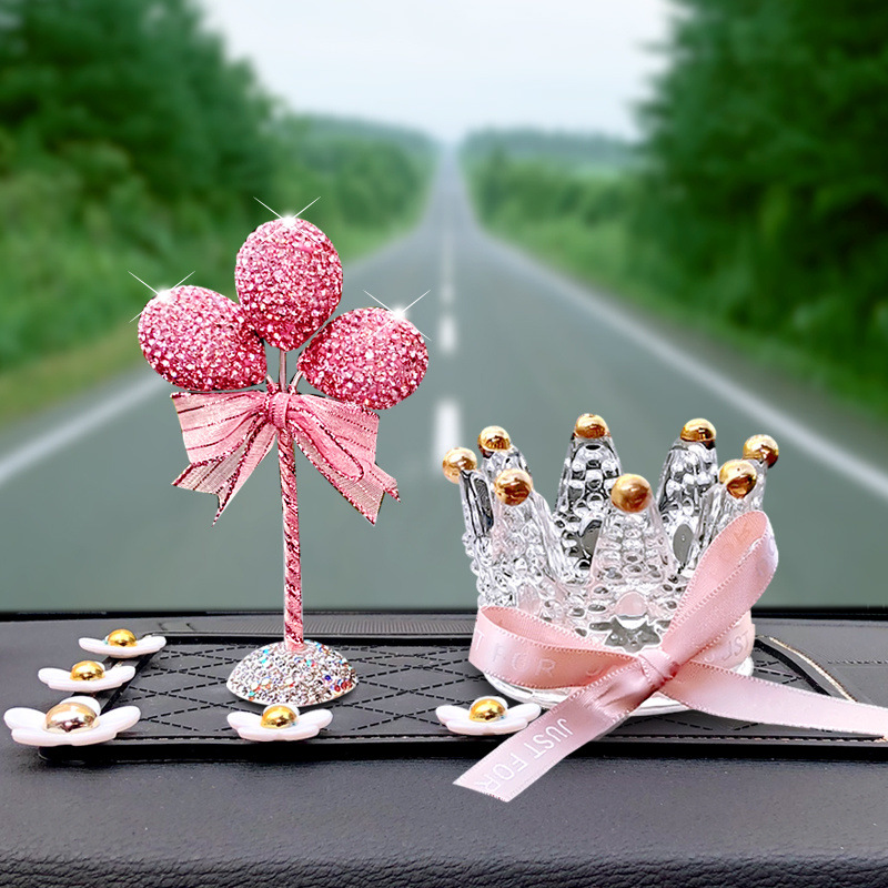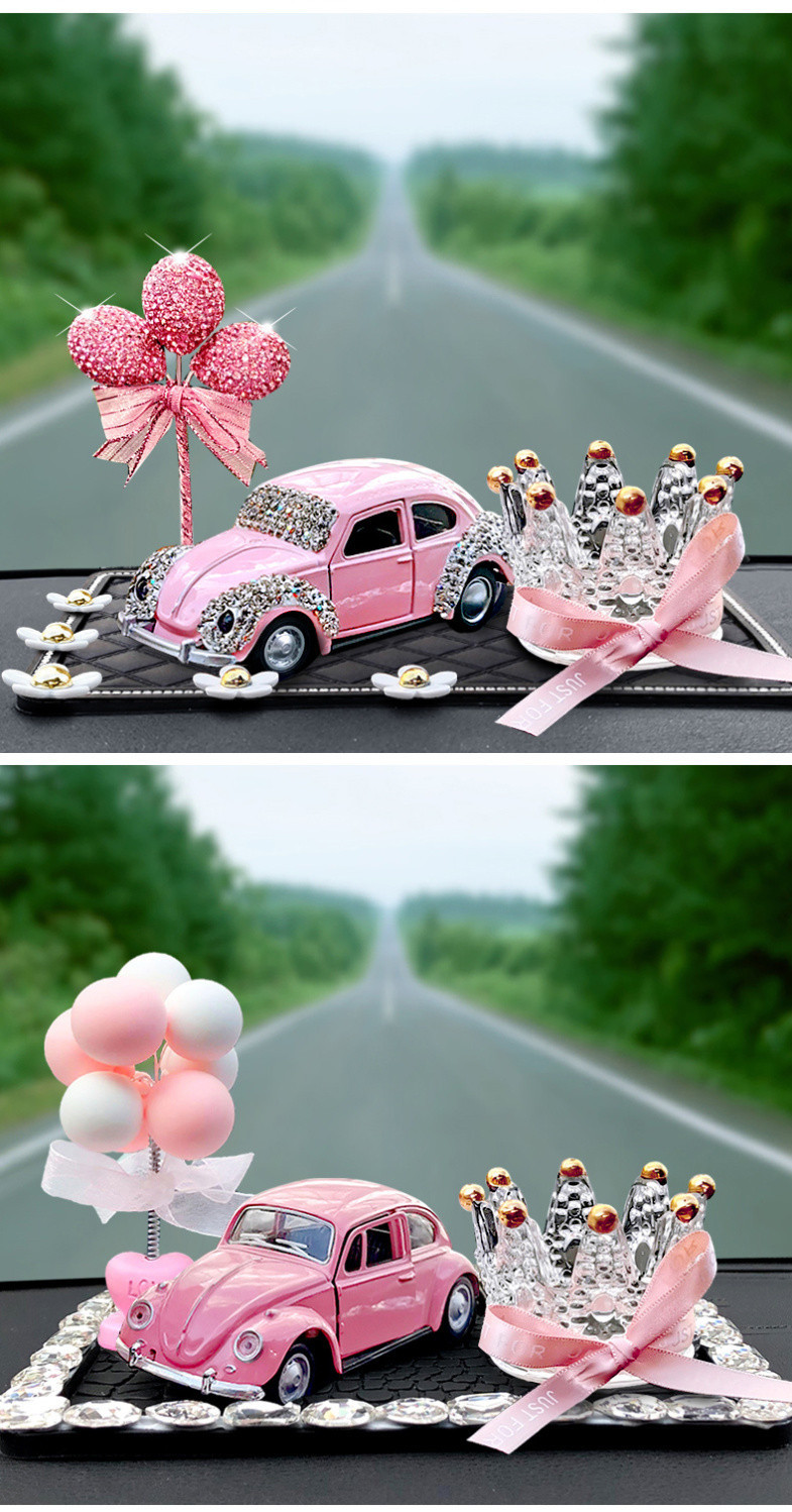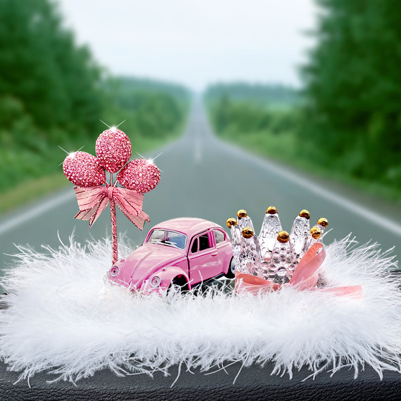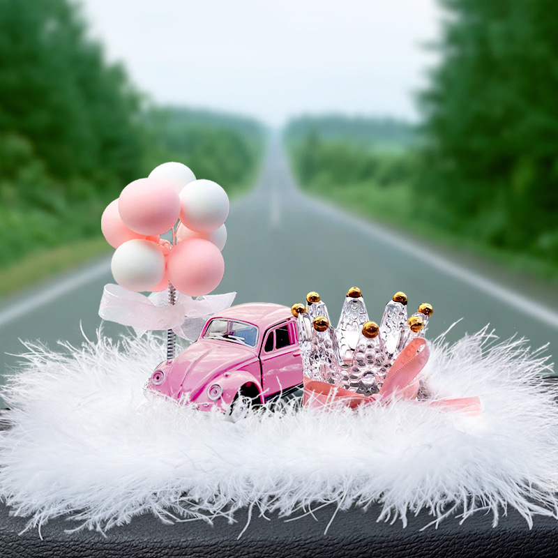 • 핑크 크라운 + 핑크 스윙 풍선 + 핑크 자동차 + 다이아몬드 쿠션