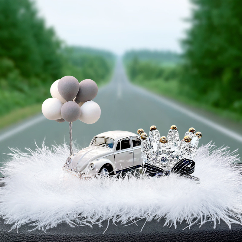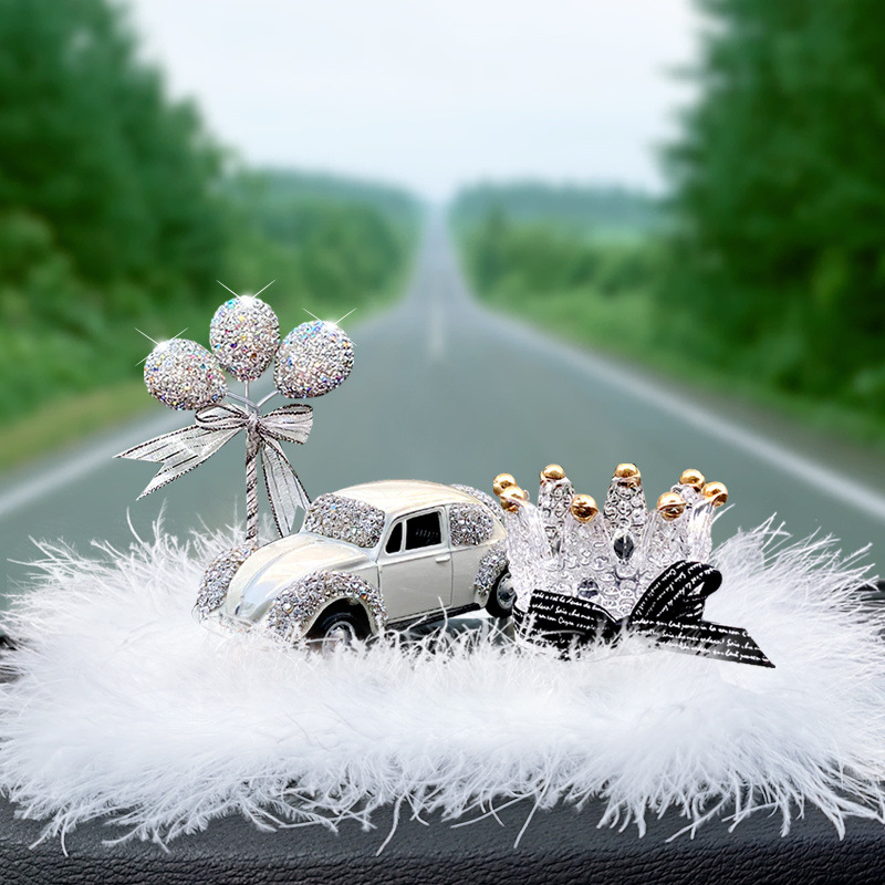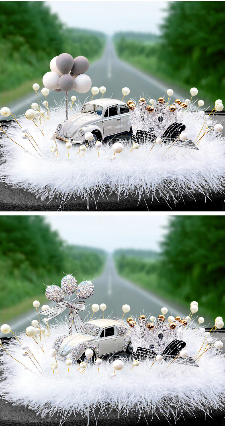 • 왕관 + 화이트 다이아몬드 풍선 + 화이트 자동차 + 대형 깃털 쿠션