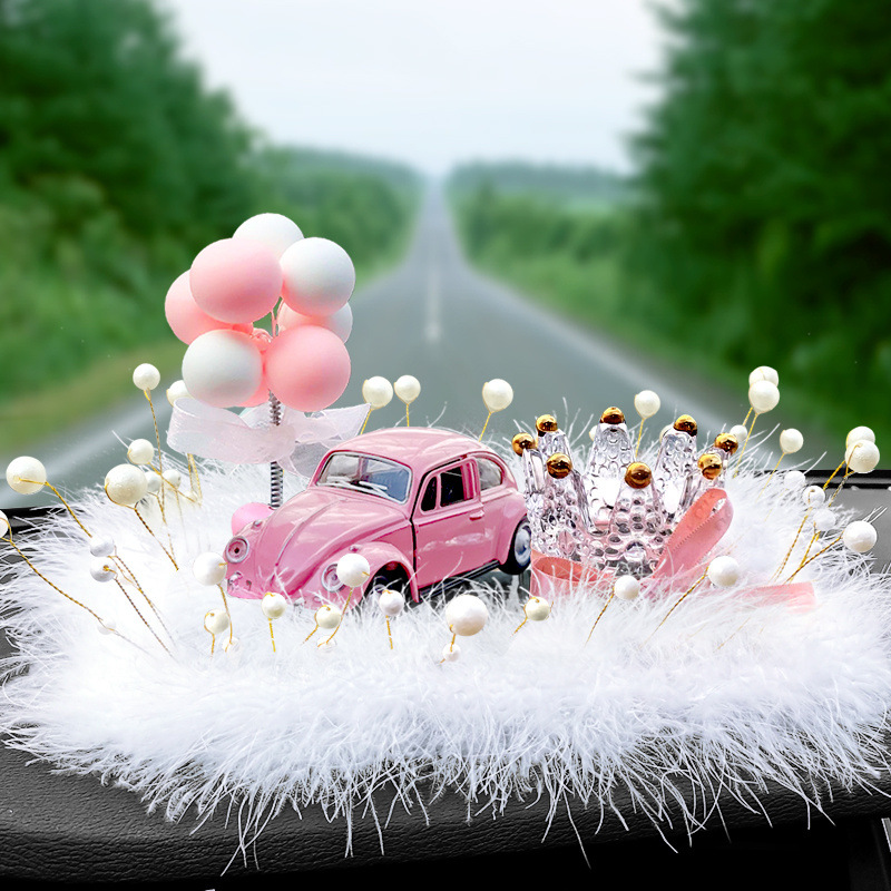 • 핑크 크라운 + 핑크 다이아몬드 풍선 + 핑크 자동차 + 대형 깃털 쿠션