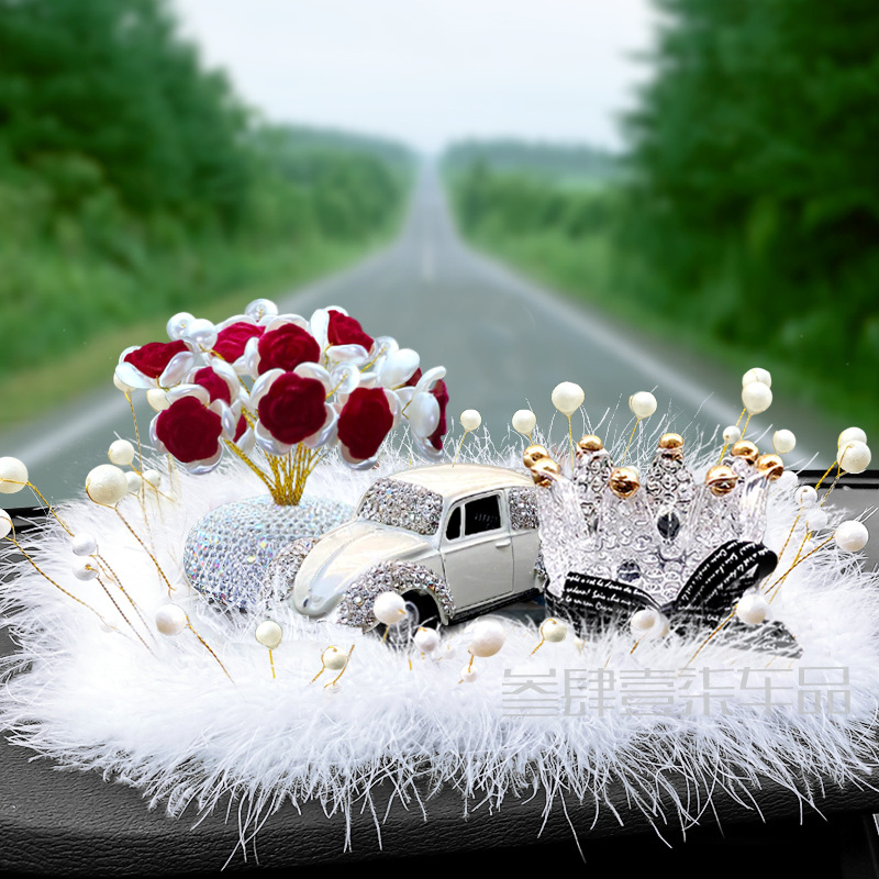 • 크라운 + 화이트 다이아몬드 자동차 + 다이아몬드가 박힌 장미 + 대형 진주 쿠션