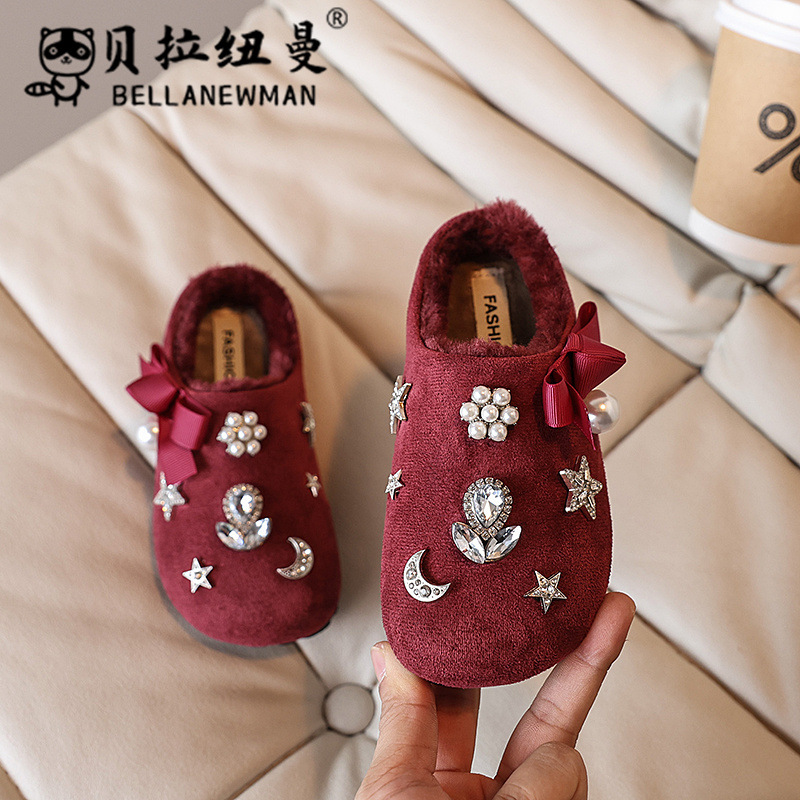 어린이 겨울 반 드래그 출생화 2024 새로운 한국 스타일 소녀 패션 라인스톤 따뜻한 면화 대형 어린이스토어 가기