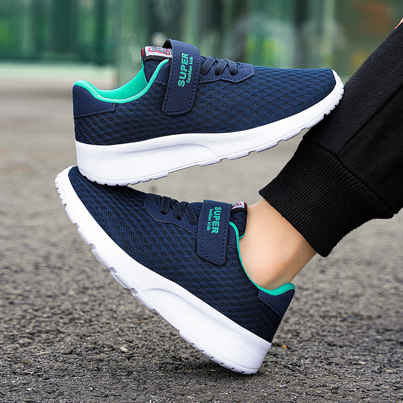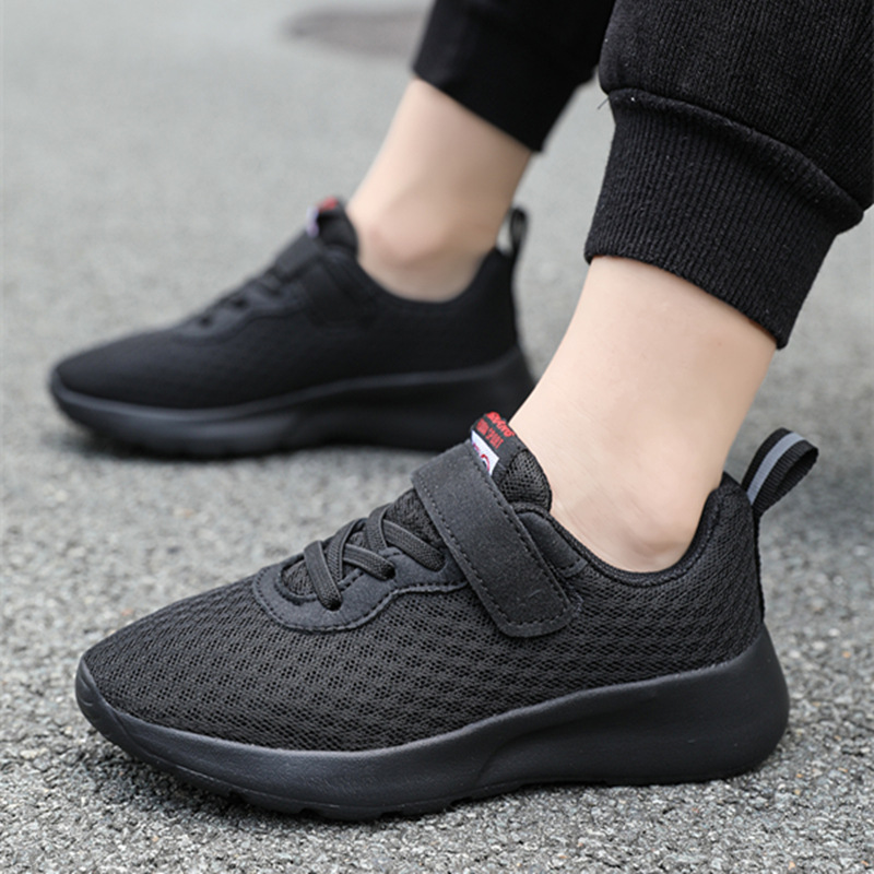 소년 운동화 어린이 더블 메쉬 통기성 운동화 큰 어린이 폭발 소년 신발 소프트 단독 올 블랙 신발스토어 가기