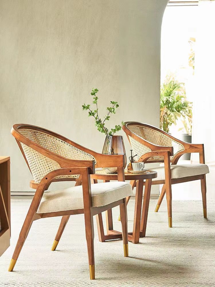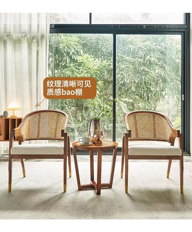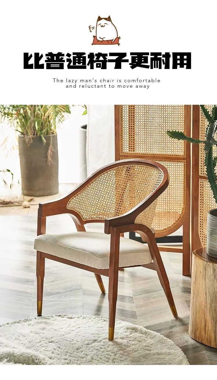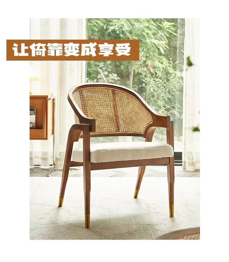 북유럽 간단한 솔리드 우드 다이닝 의자 등나무 디자이너 레저 의자 레스토랑 홈스테이 레트로 홈 싱글 미국 의자스토어 가기