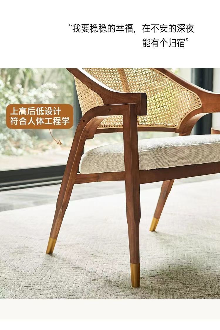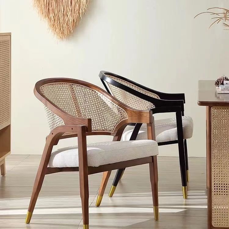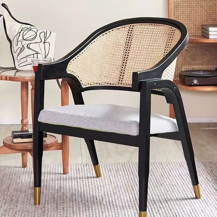 북유럽 간단한 솔리드 우드 다이닝 의자 등나무 디자이너 레저 의자 레스토랑 홈스테이 레트로 홈 싱글 미국 의자