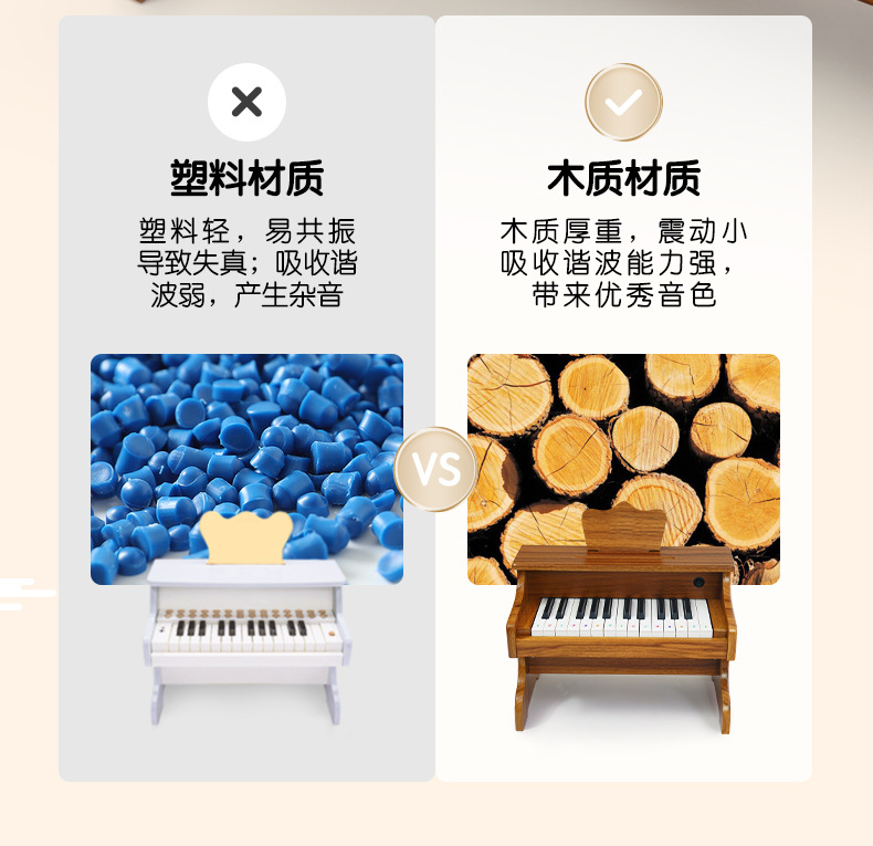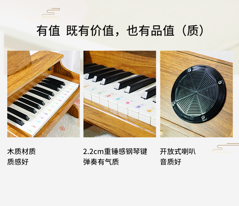 • 접이식 25키 나무 피아노 나무 브라운