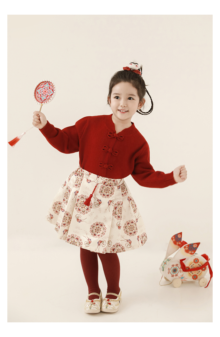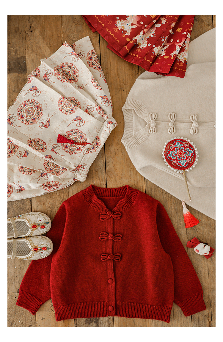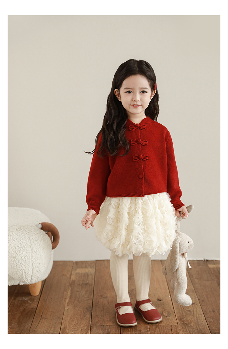 Wuri Boo Girl의 새로운 중국 늙은 Qian Feng 스웨터 코트 겨울 경계 귀여운 따뜻한 레드 연례 코트