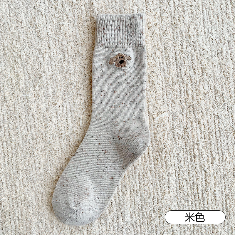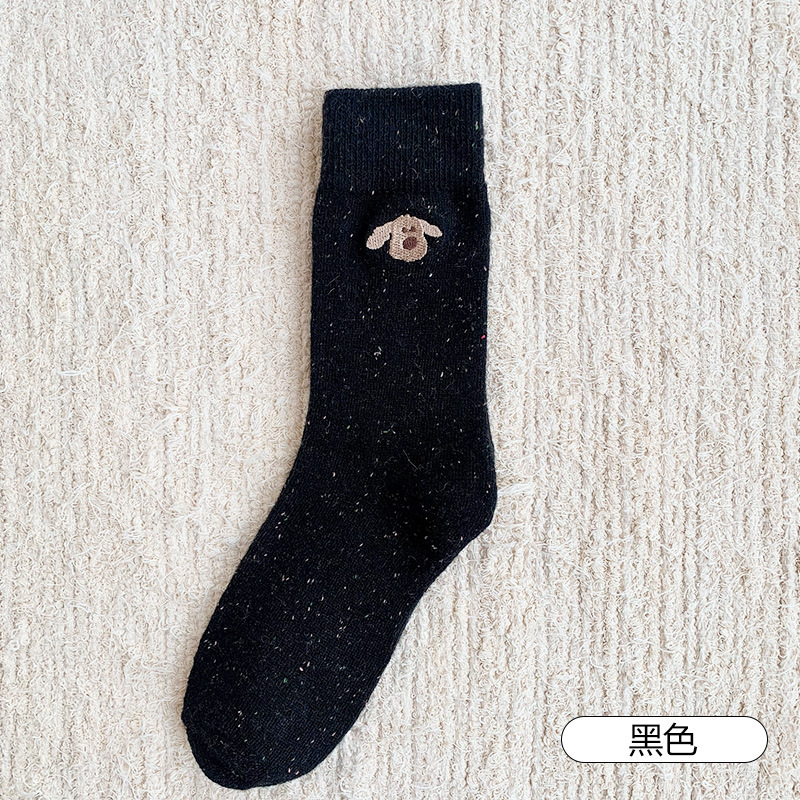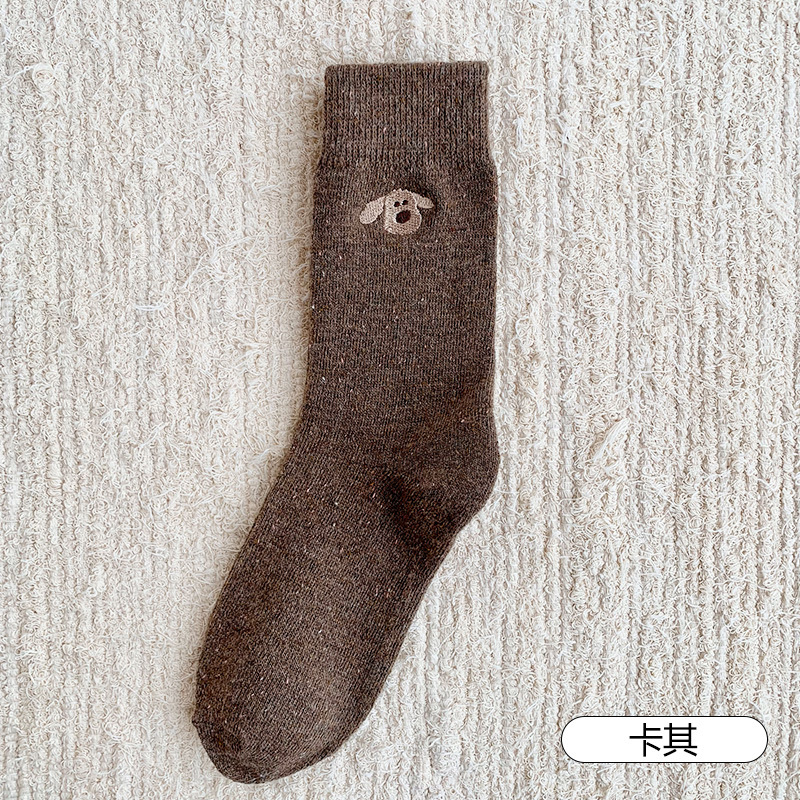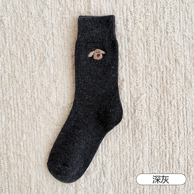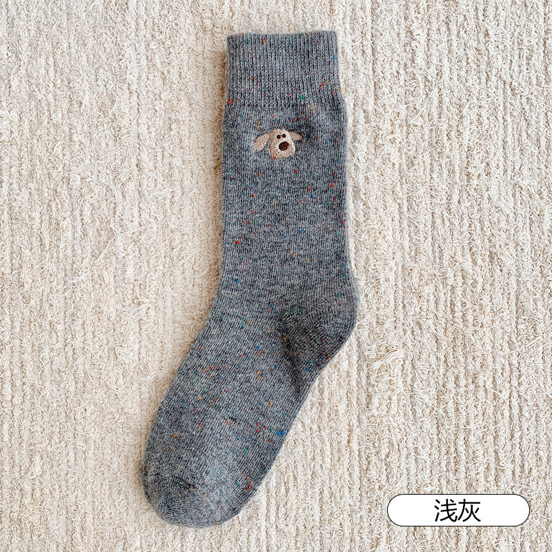회색 자수 강아지 여성 양말 가을과 겨울 두꺼운 따뜻한 집 내한성 수면 양말 탄성 피부 친화적 인 편안한 양모 양말