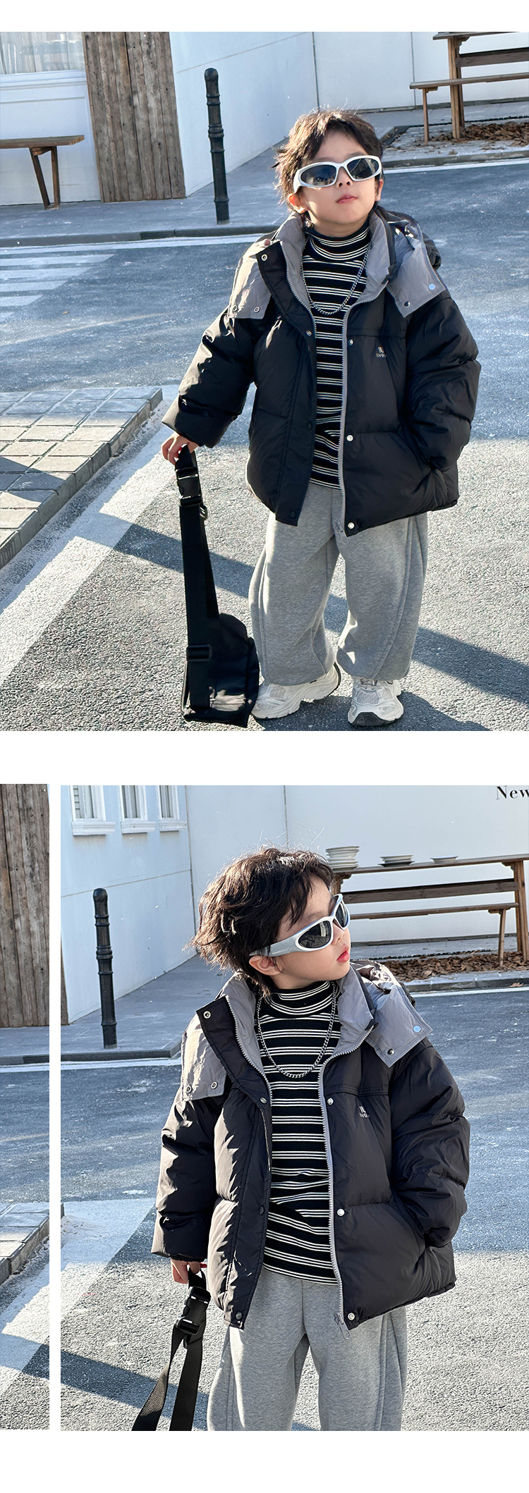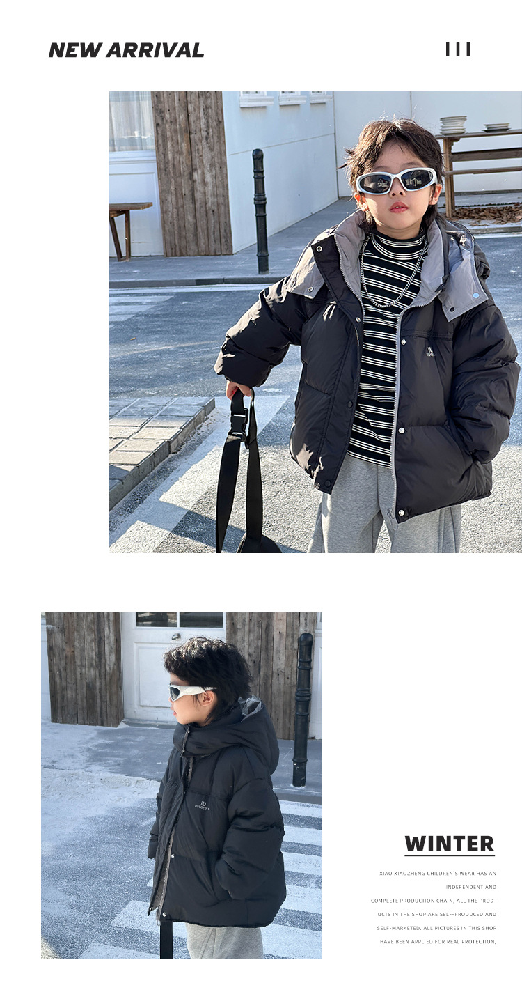 남학생 양면 다운 재킷 2024 겨울 새 어린이 한국식 벨벳 자켓 어린이 화이트 덕 다운 따뜻한 옷스토어 가기
