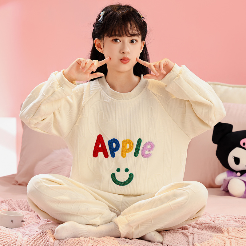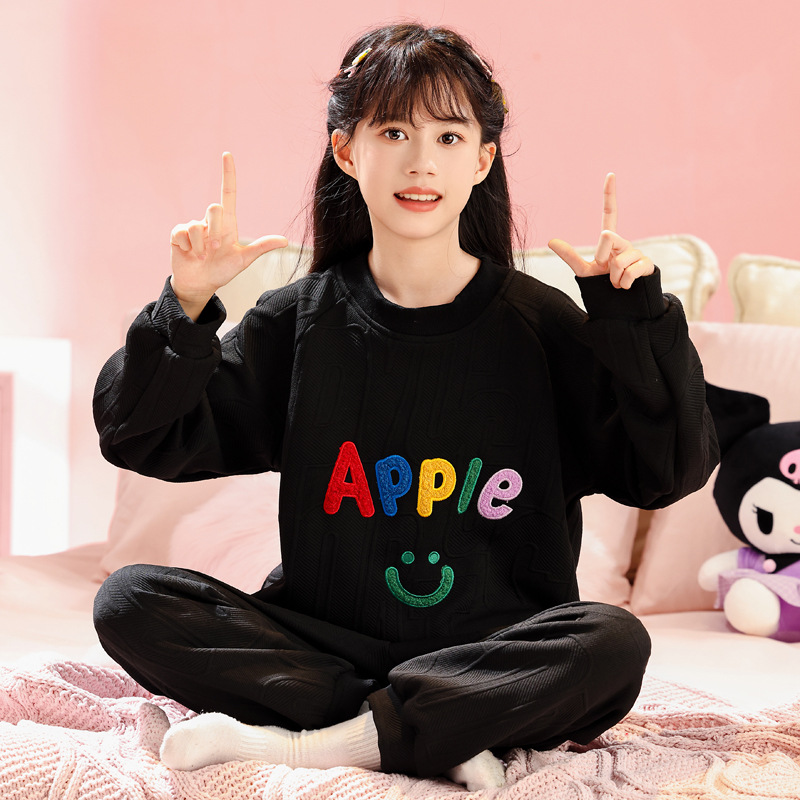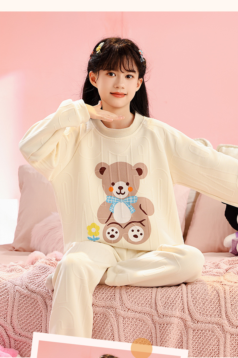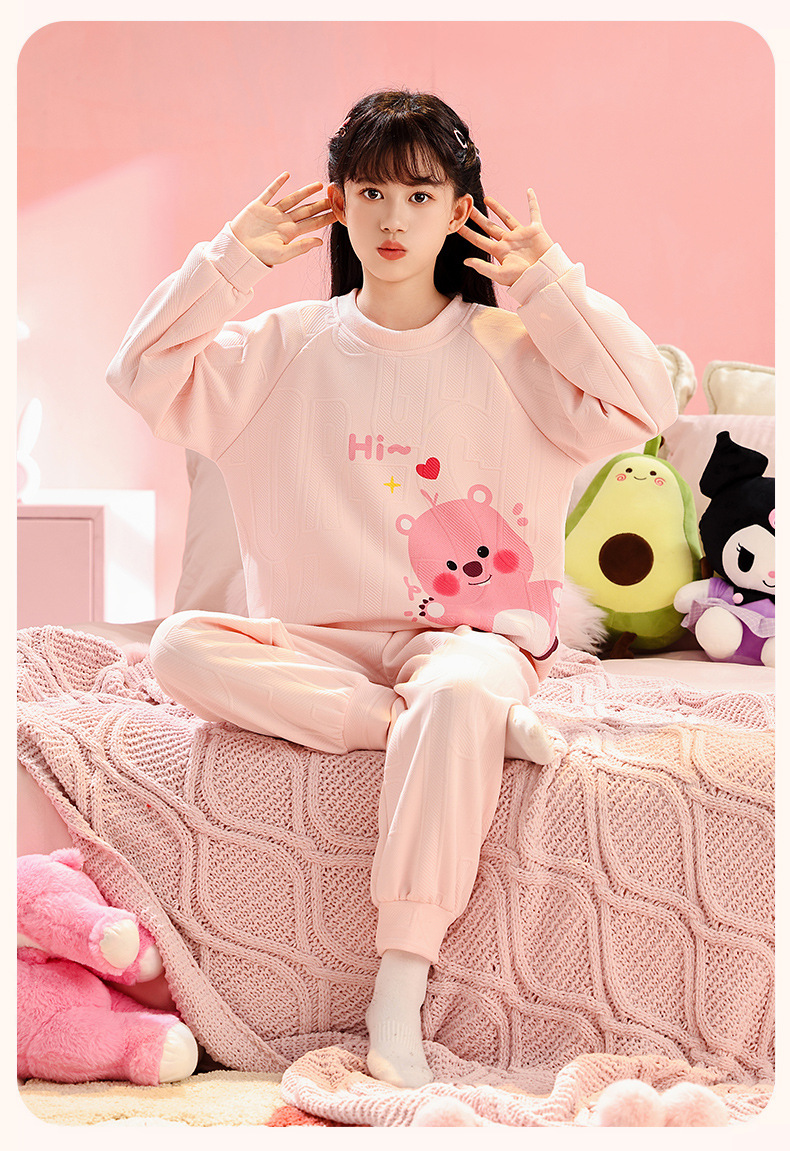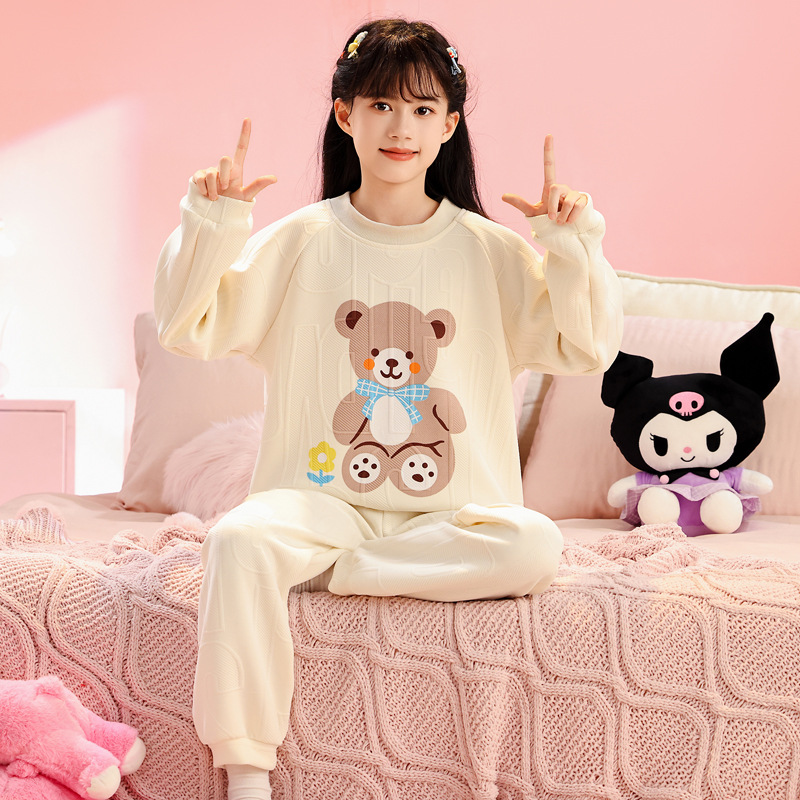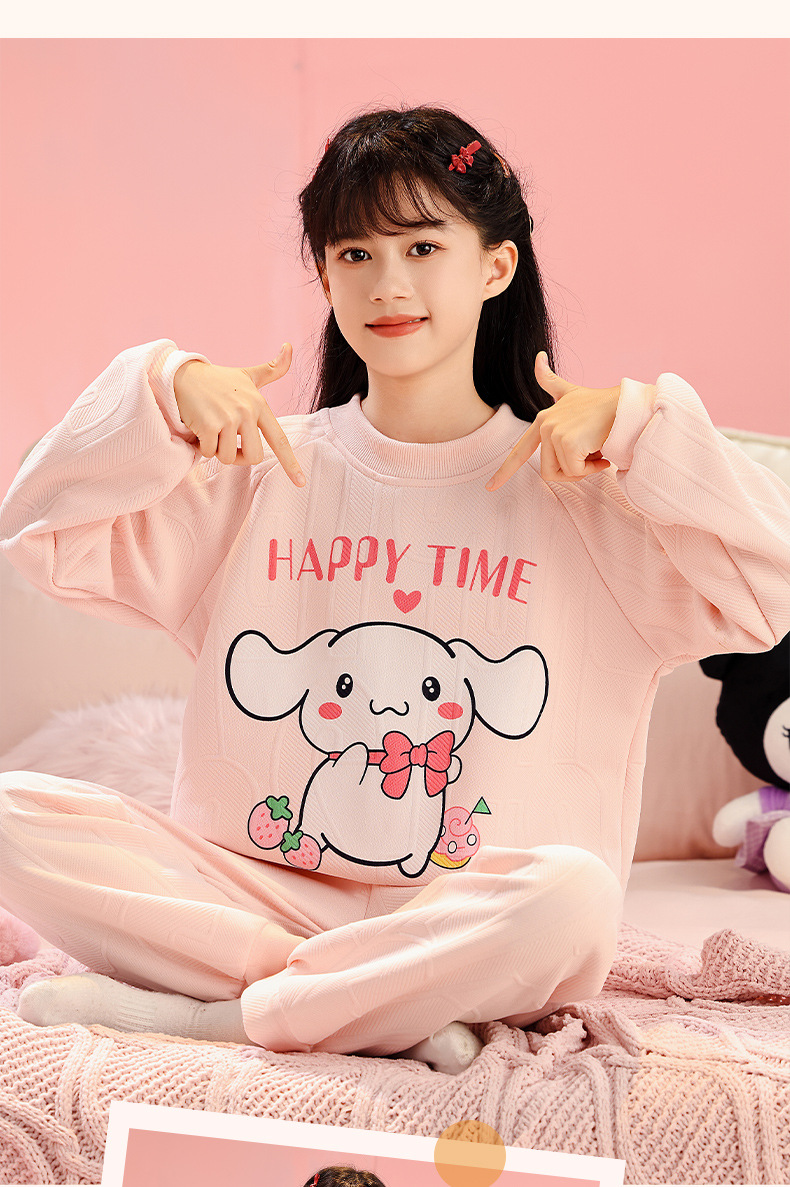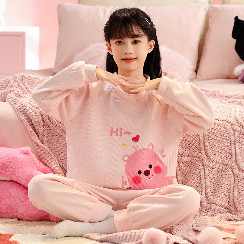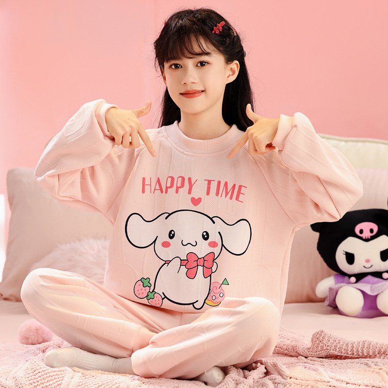 소녀 잠옷 가을과 겨울 긴 소매 얇은 만화 귀여운 두꺼운 따뜻한 중간 큰 어린이 공기 샌드위치 홈 옷