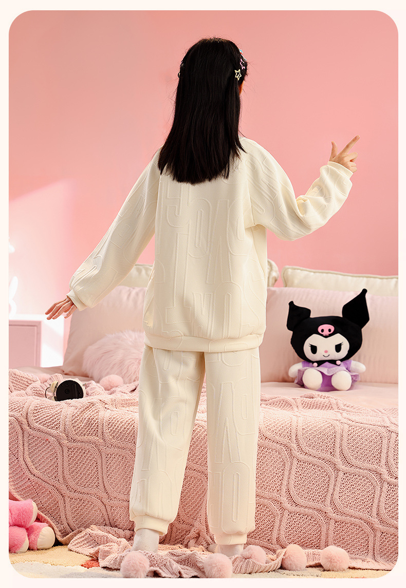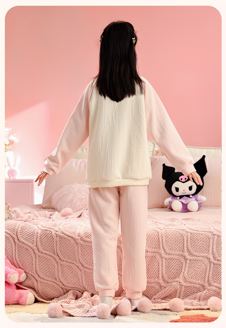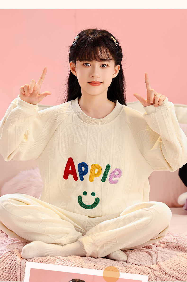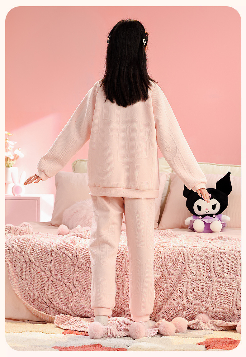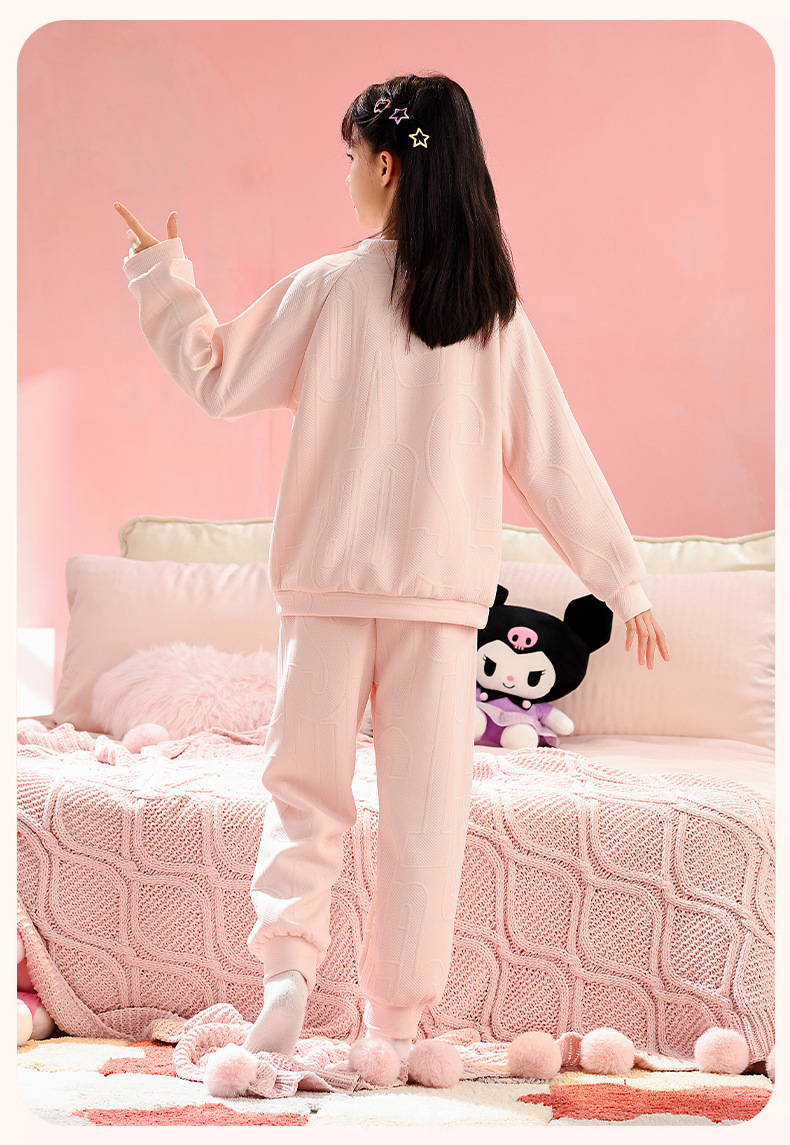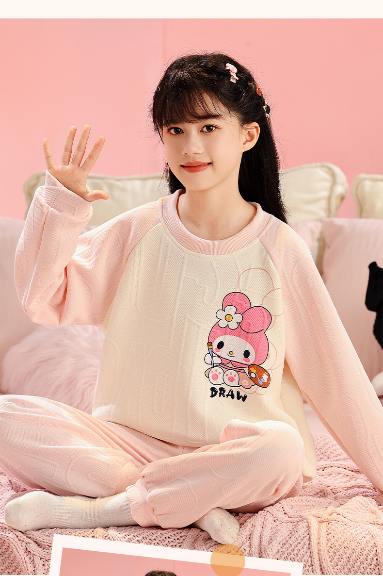 소녀 잠옷 가을과 겨울 긴 소매 얇은 만화 귀여운 두꺼운 따뜻한 중간 큰 어린이 공기 샌드위치 홈 옷