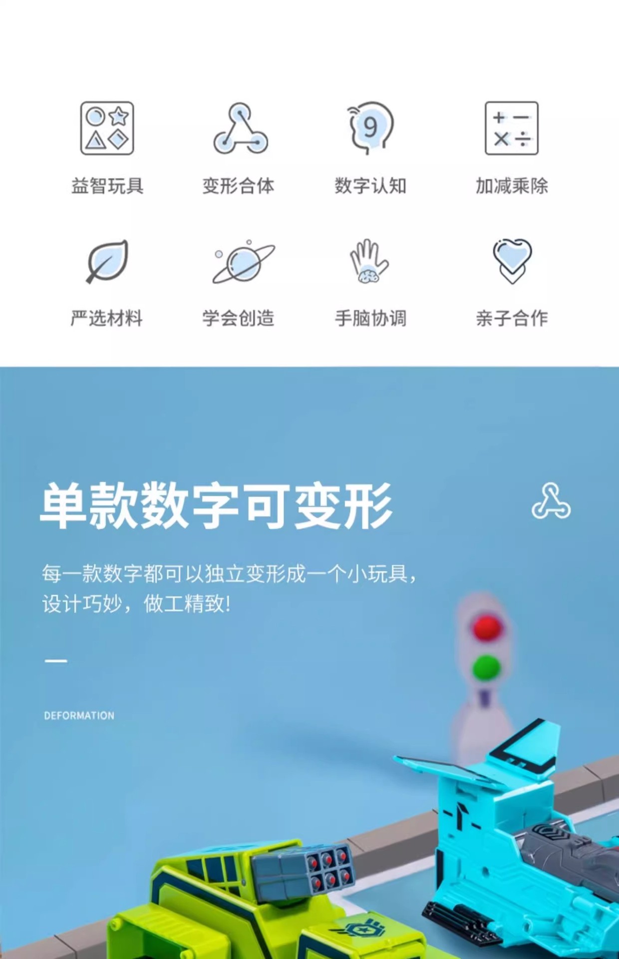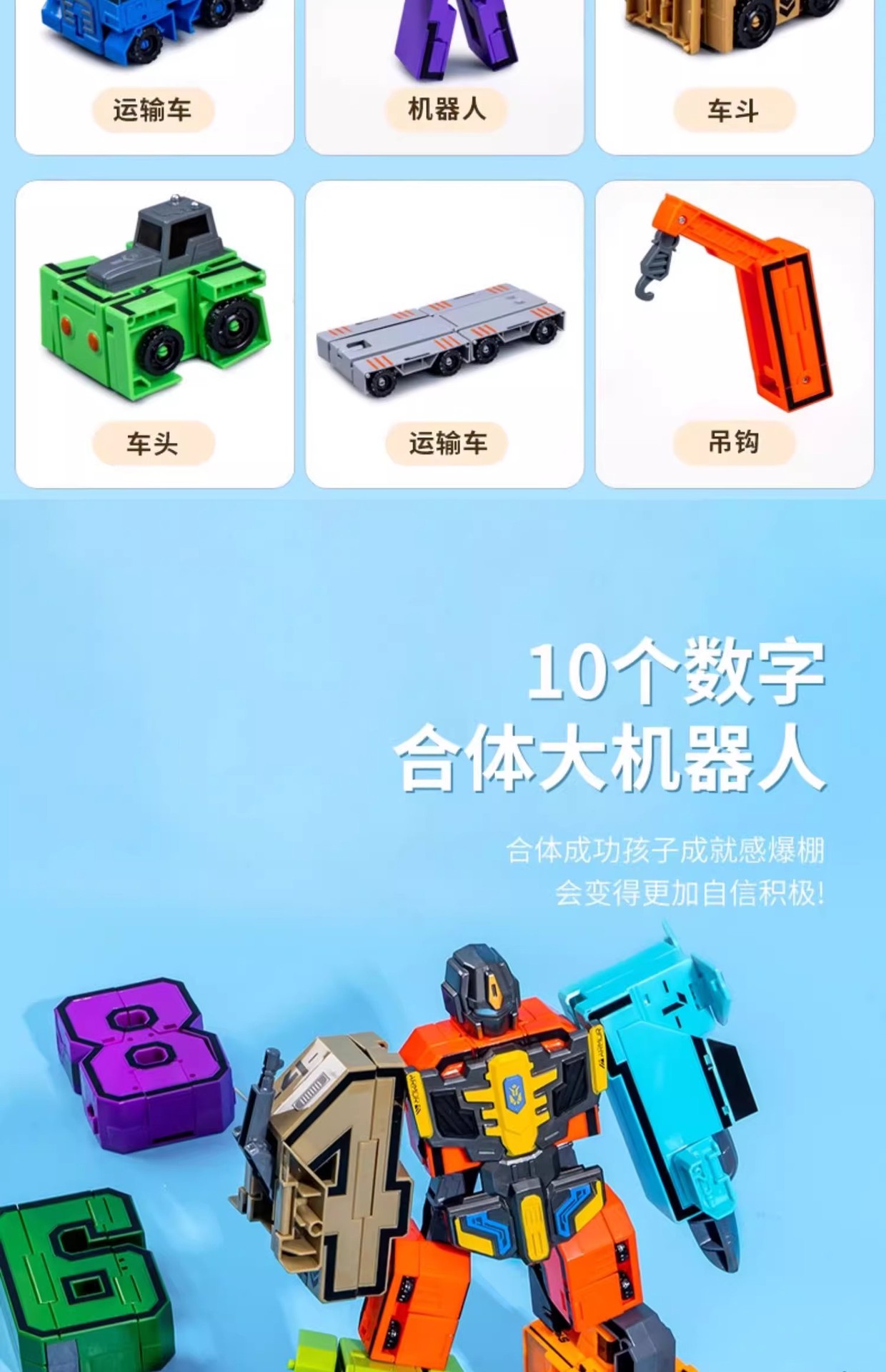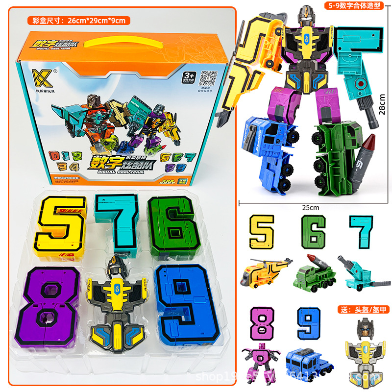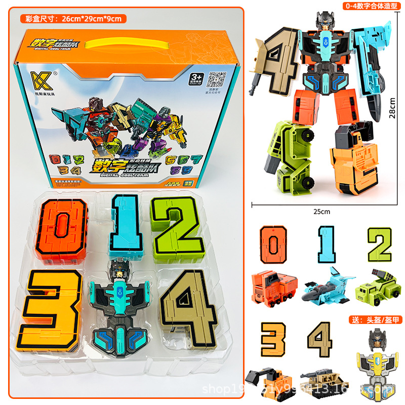 어린이 퍼즐 디지털 변형 장난감 0-9 초등 학생을위한 디지털 조립 로봇 세트 장난감 도매스토어 가기