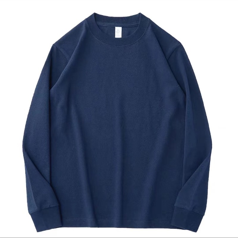 200g 코튼 솔리드 컬러 라운드 넥 긴 소매 남성용 티셔츠 남성과 여성의 동일한 스타일 내부 긴 소매 탑 루즈베이스 셔츠