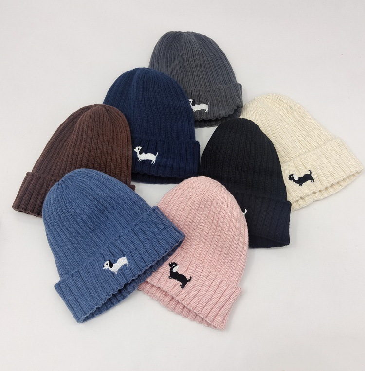 겨울 어린이 따뜻한 모자 Ins 한국 스타일 만화 자수 강아지 소년의 풀오버 여성 아기의 니트 양모 모자