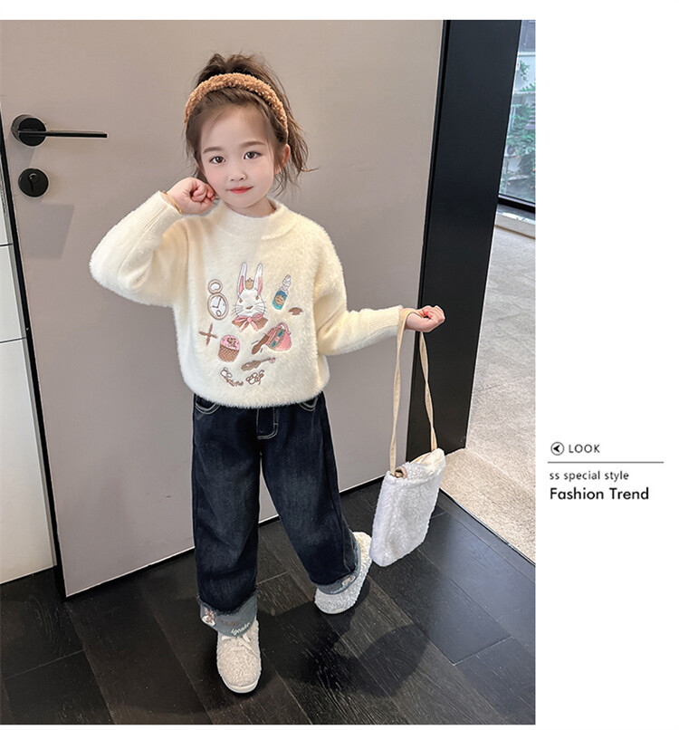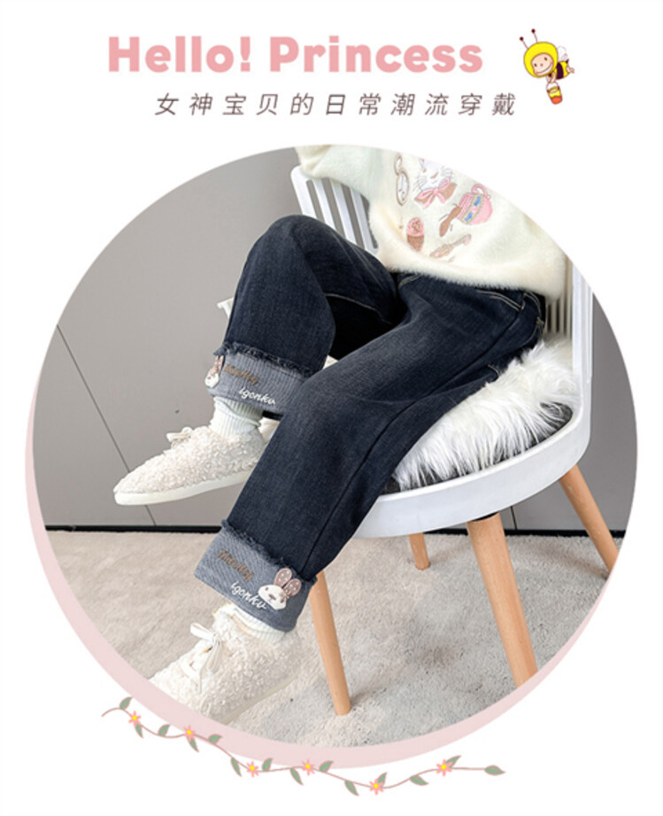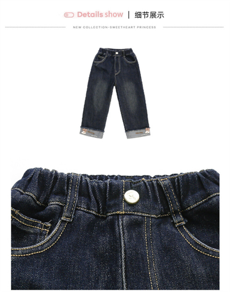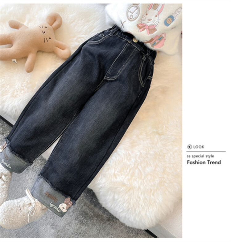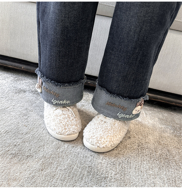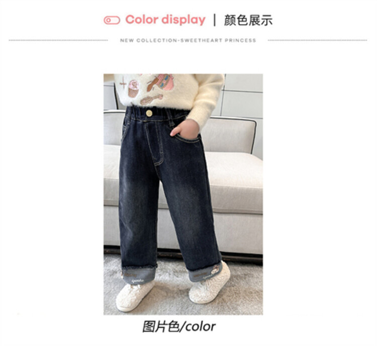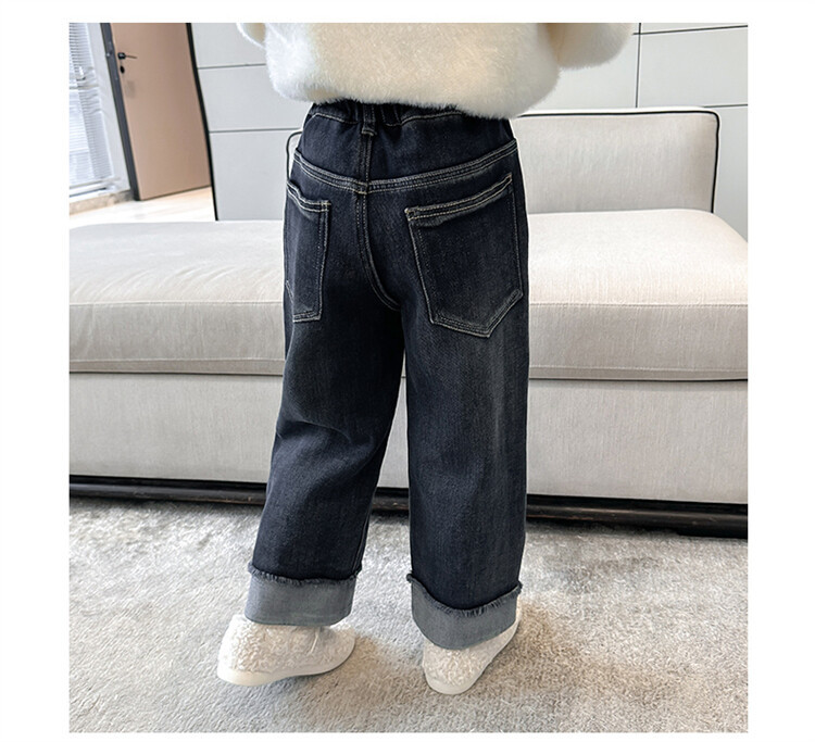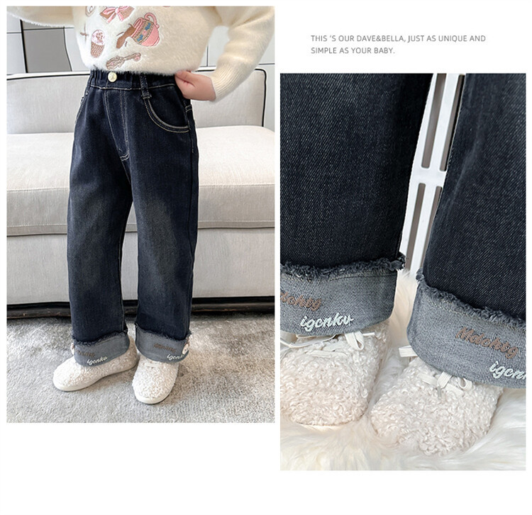 여자 벨벳 두꺼운 청바지 2024 겨울 새로운 원피스 벨벳 아기 느슨한 어린이 스트레이트 튜브스토어 가기