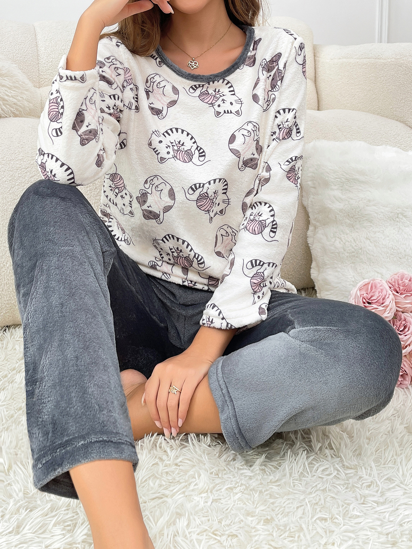 국경 간 가을과 겨울 귀여운 동물 인쇄 따뜻한 긴팔 바지 홈 의류 세트스토어 가기