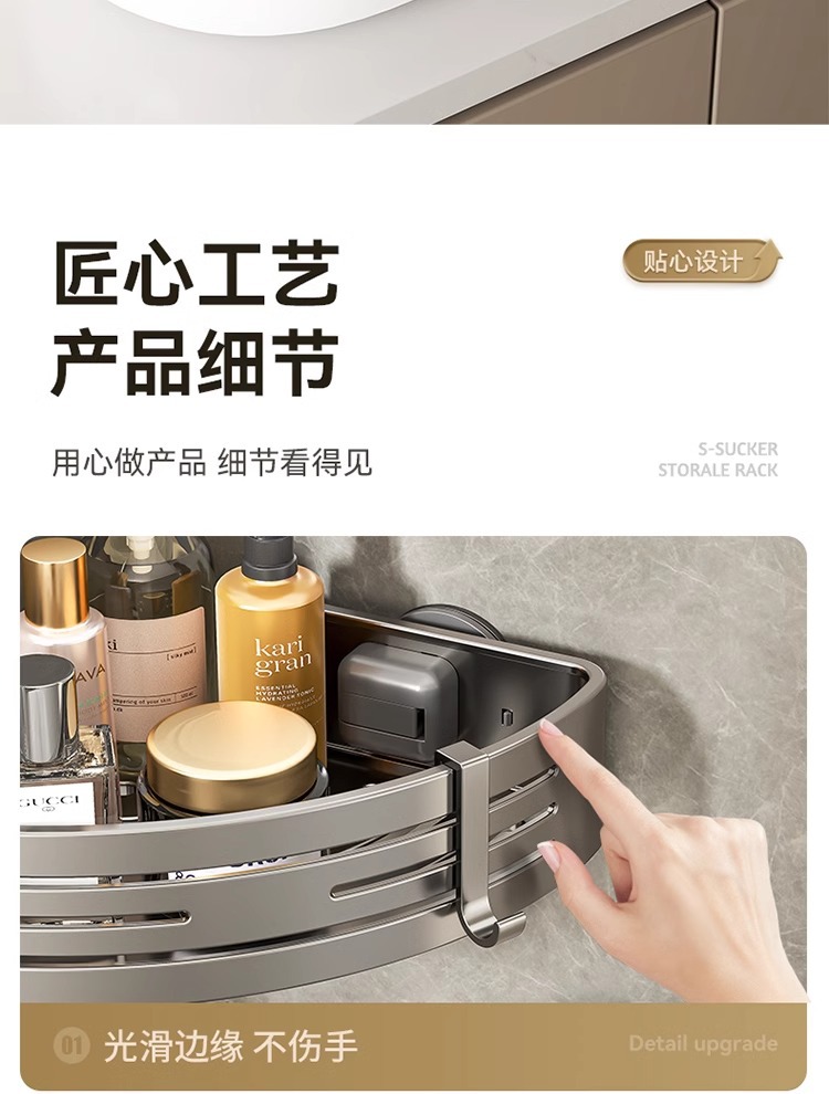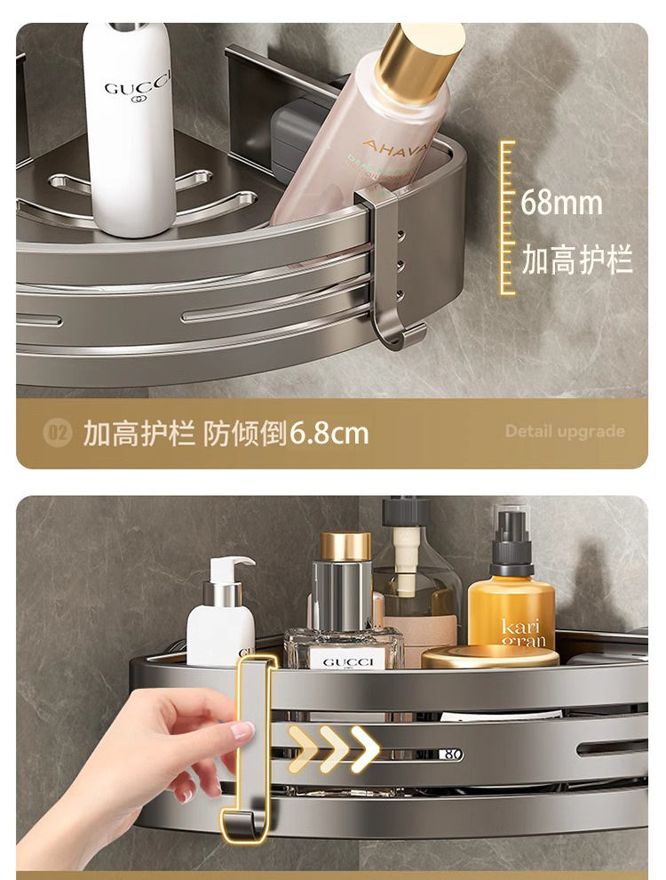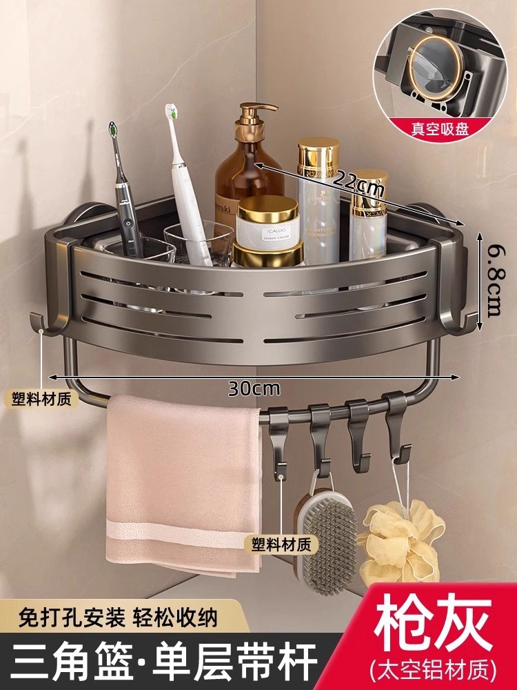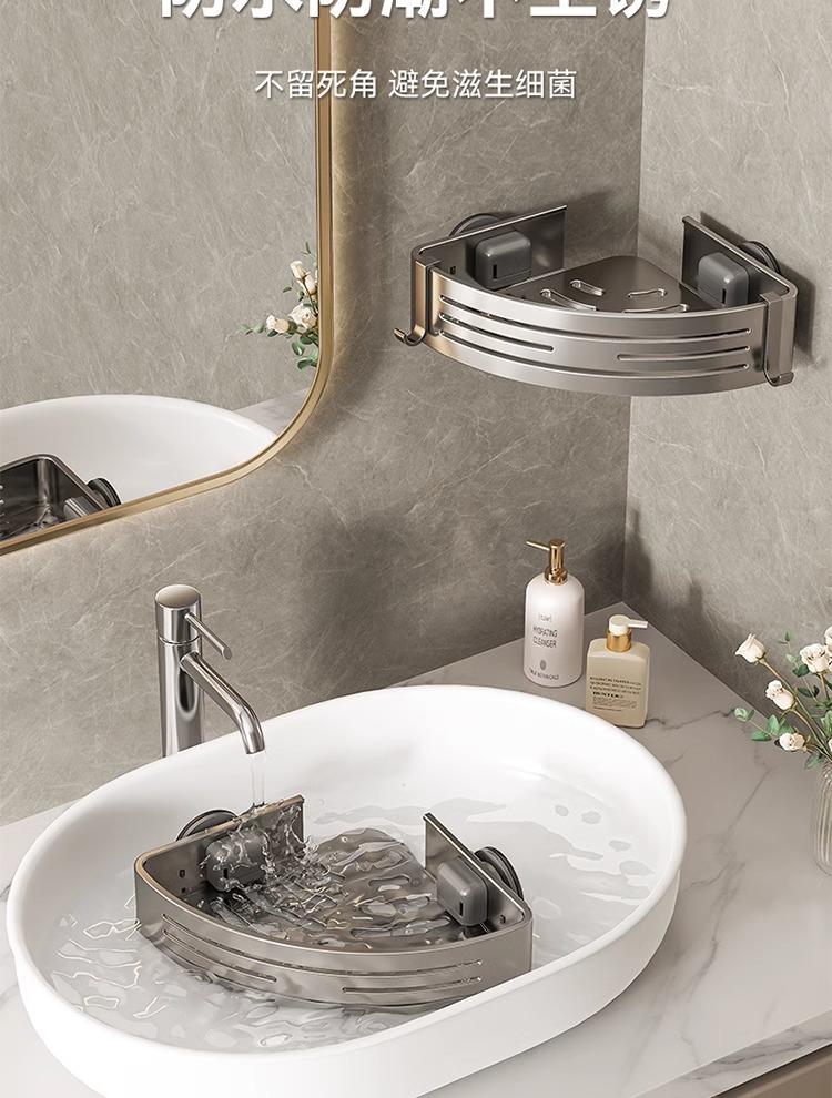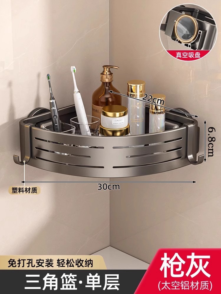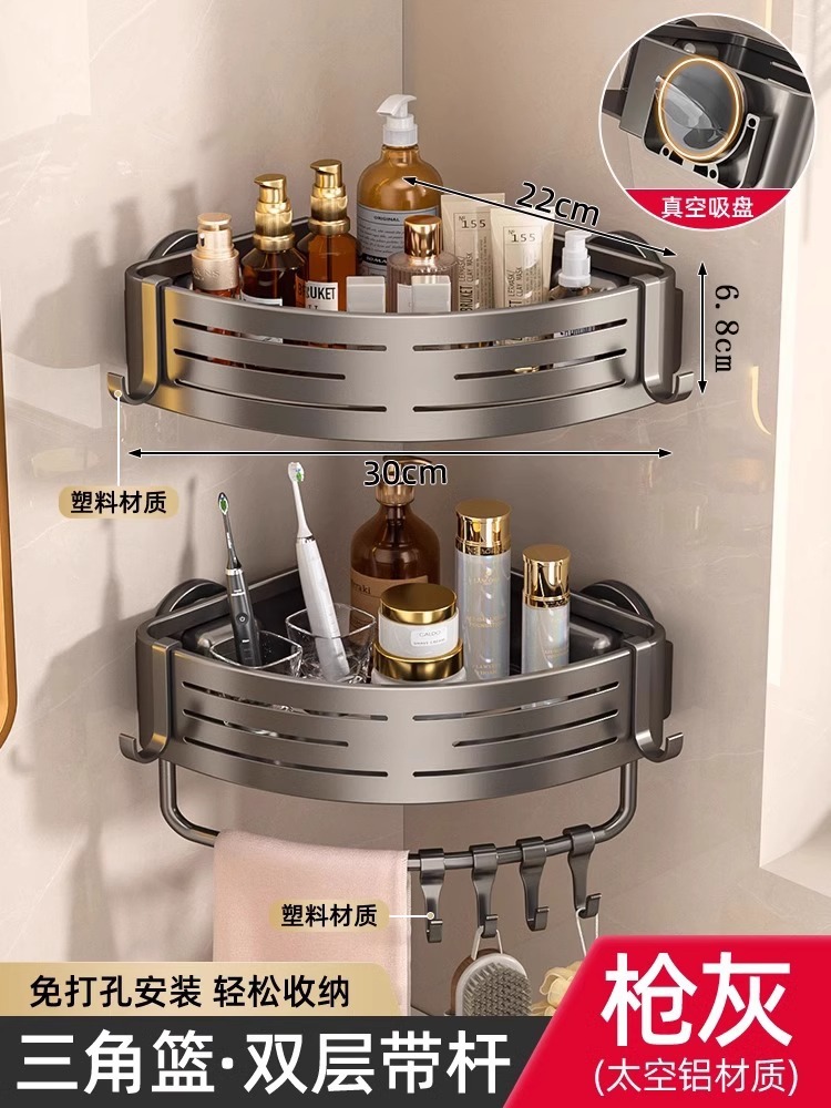 • [업그레이드 및 높이 68mm] 건그레이 더블 레이어 삼각바구니 [흡착컵형]