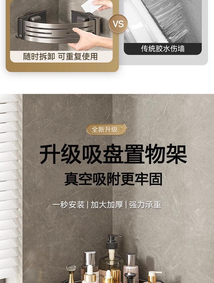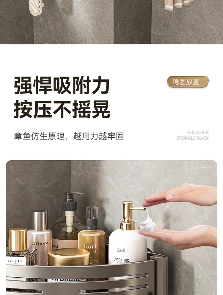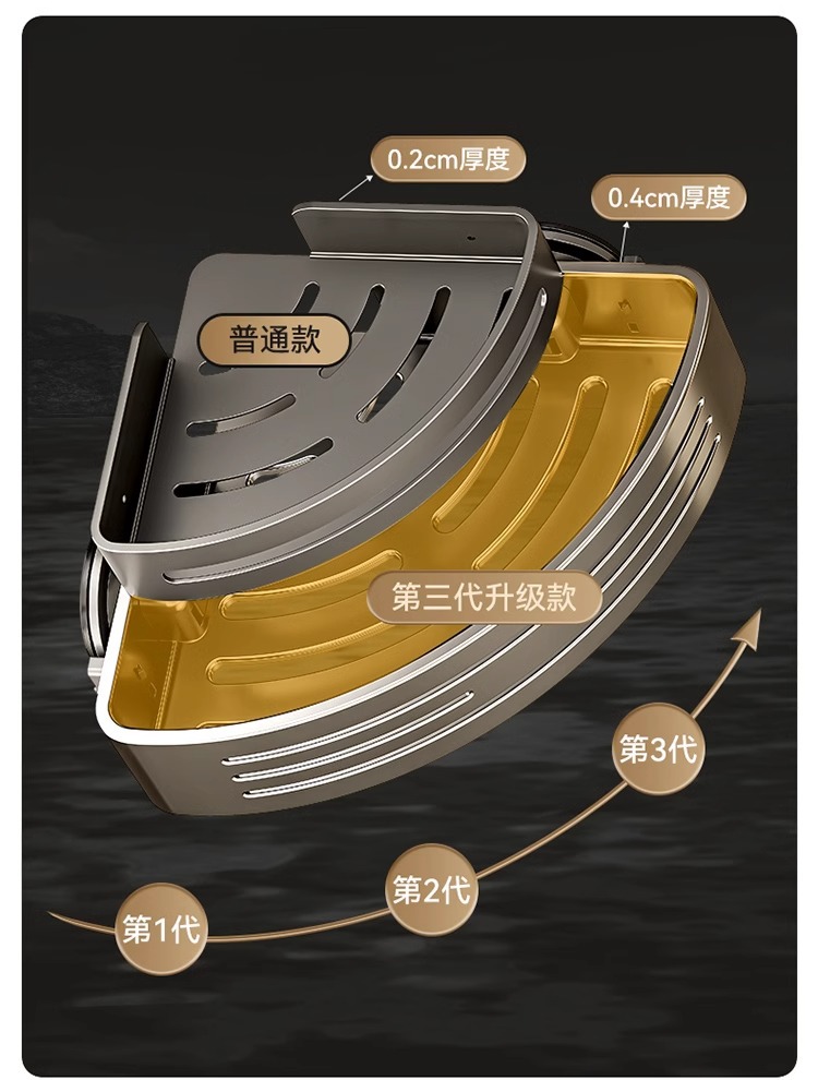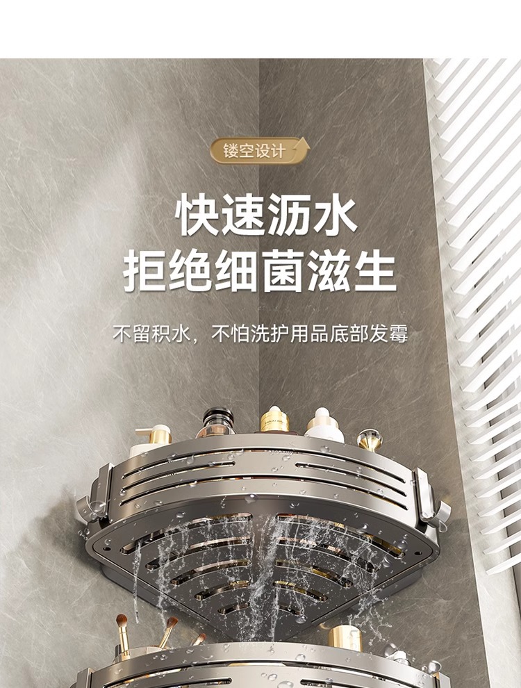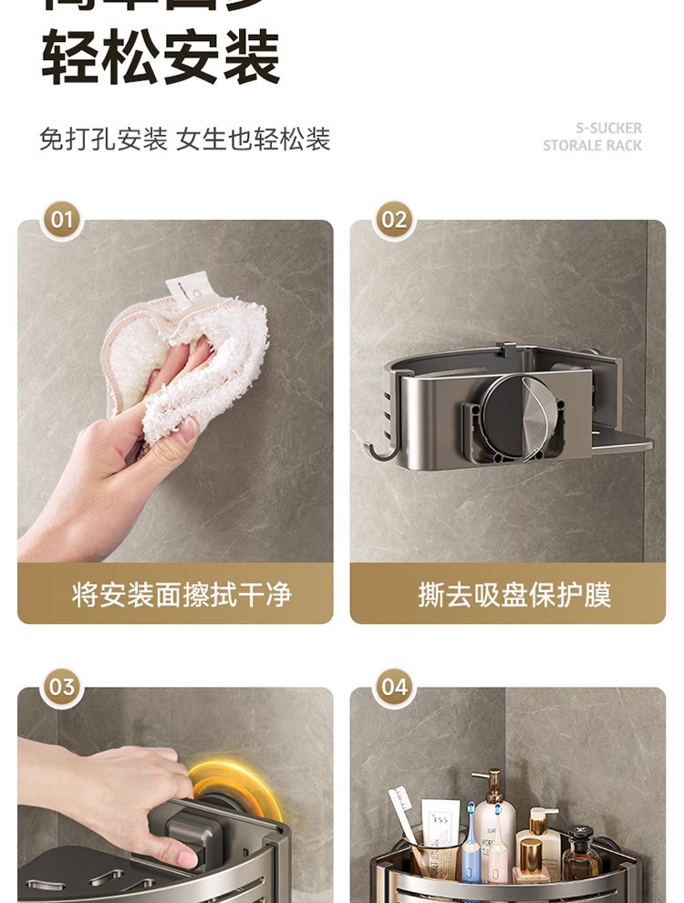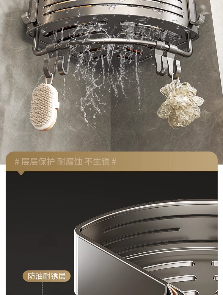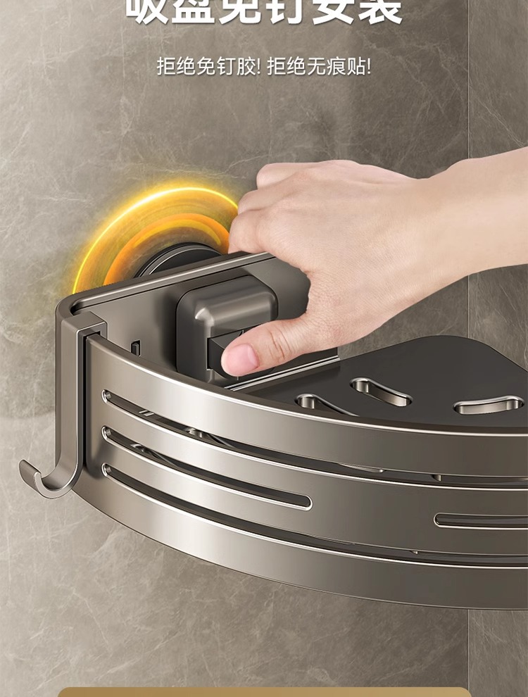 • [업그레이드 및 높이 68mm] 건그레이 더블 레이어 삼각바구니 [흡착컵형]