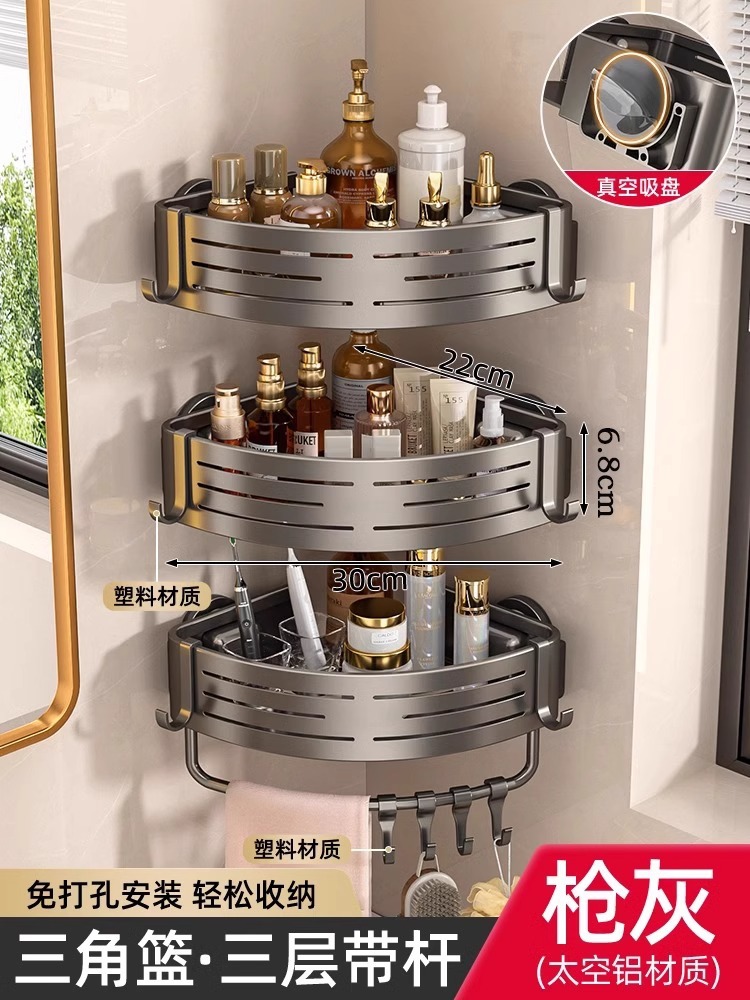 • [업그레이드 및 높이 68mm] 건그레이 3단 삼각바구니 [흡착컵형]
