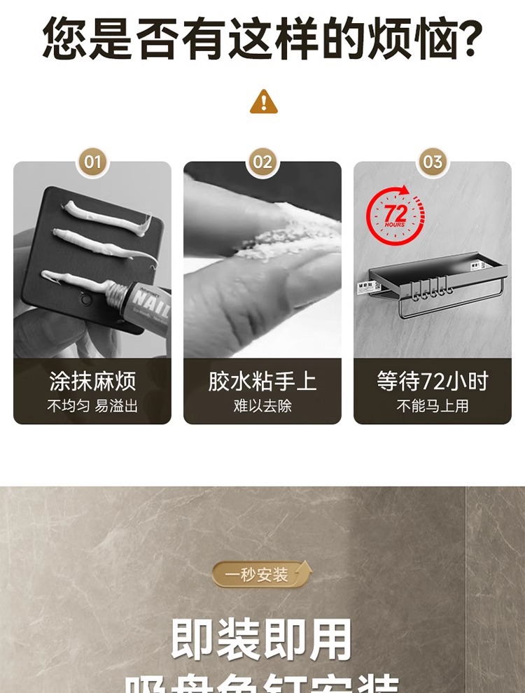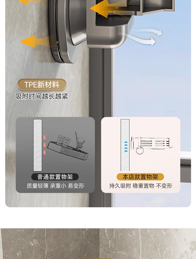 • [업그레이드 및 높이 68mm] 건그레이 삼각바구니 + 막대 [흡착컵형]