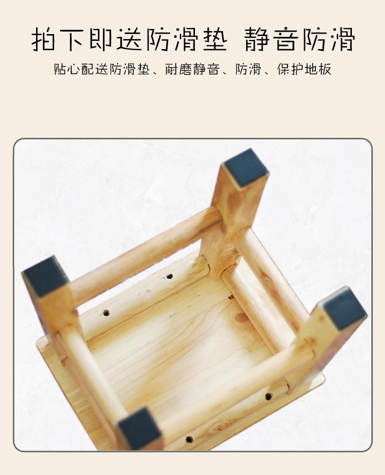 • 앉은키 25CM 직사각형 스툴 [장붓구멍과 장부 스타일, 일체형] 미끄럼 방지 매트 포함