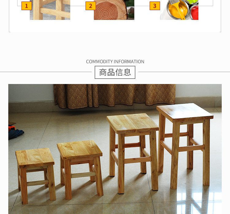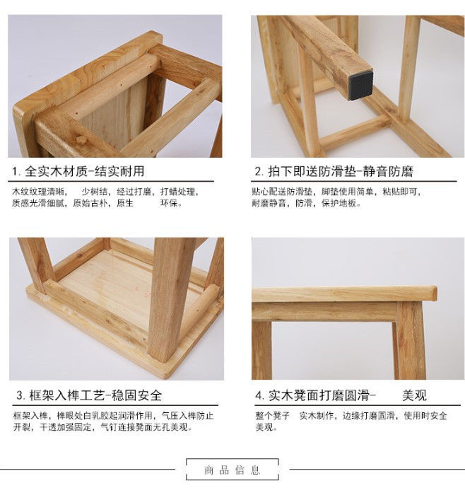 단단한 나무 사각형 의자 간단하고 실용적인 나무 벤치 광장 의자 레스토랑 식탁 나무 의자 성인 높은 의자 도매스토어 가기