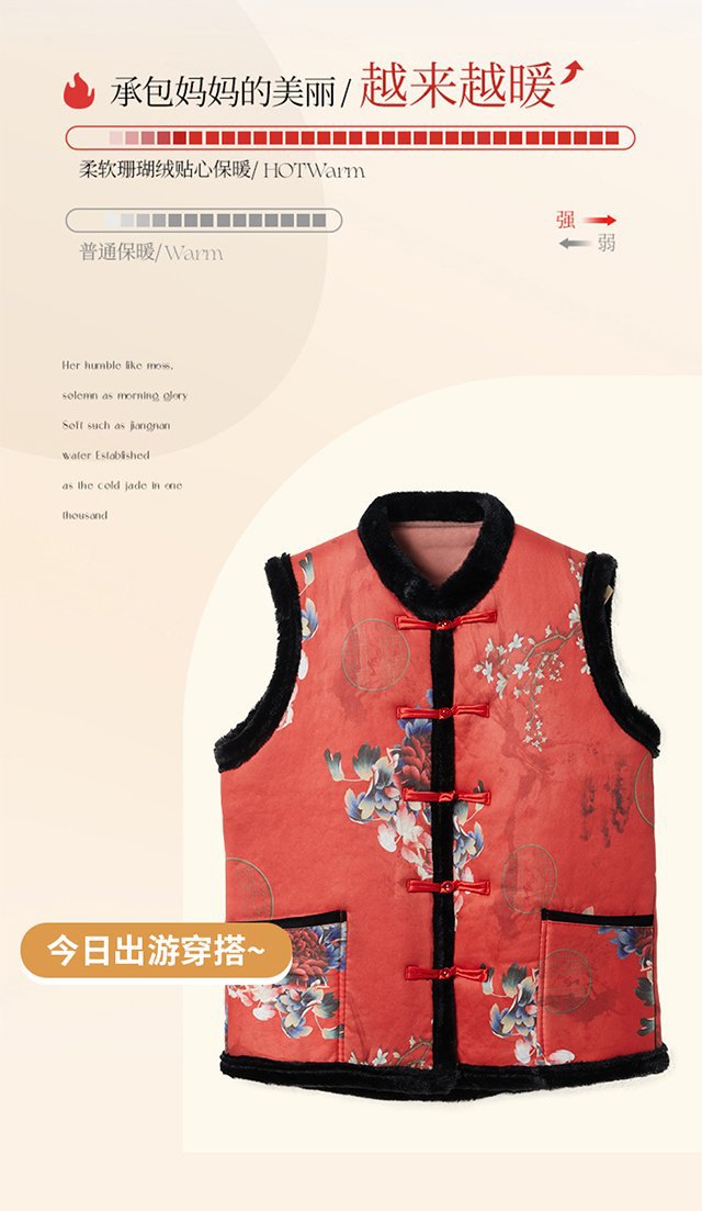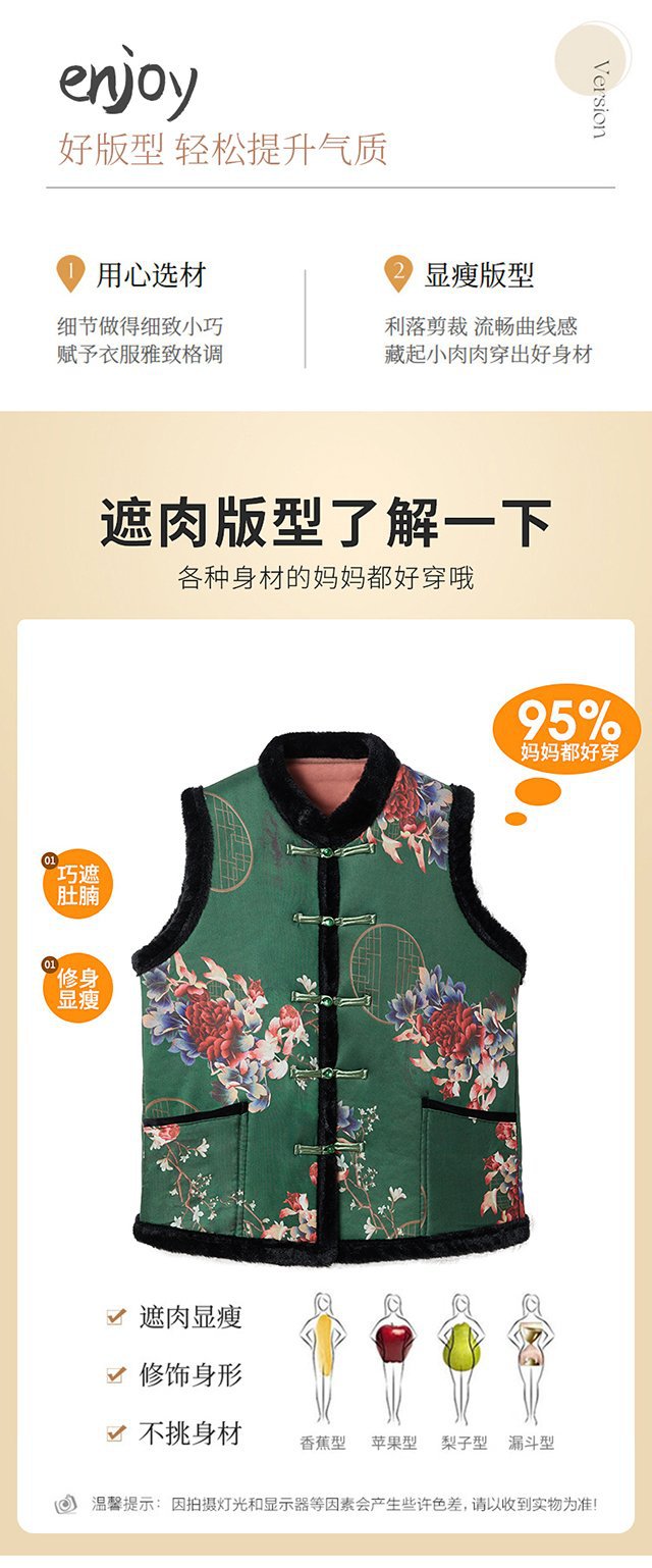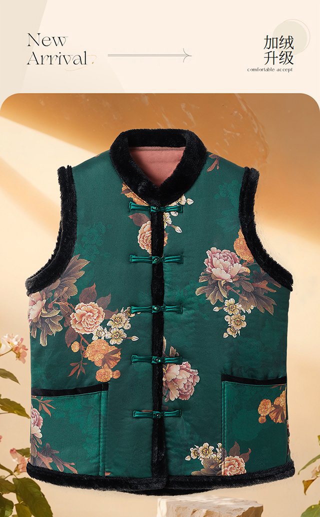 중년 및 노인 여성을위한 두꺼운 겨울 따뜻한 세탁기 기모 라이브 Guofeng 조끼스토어 가기