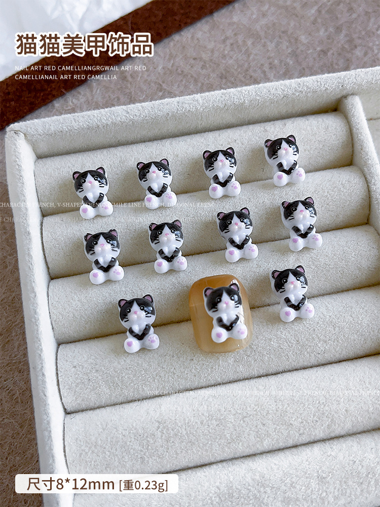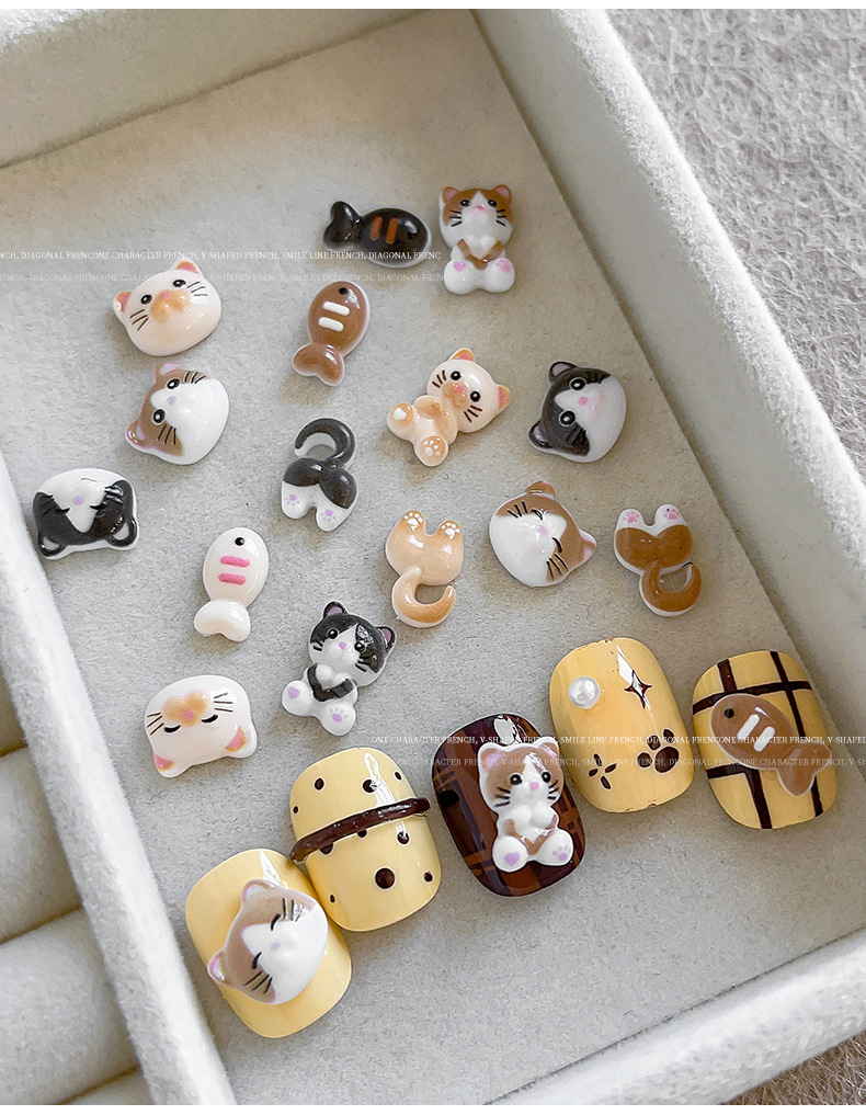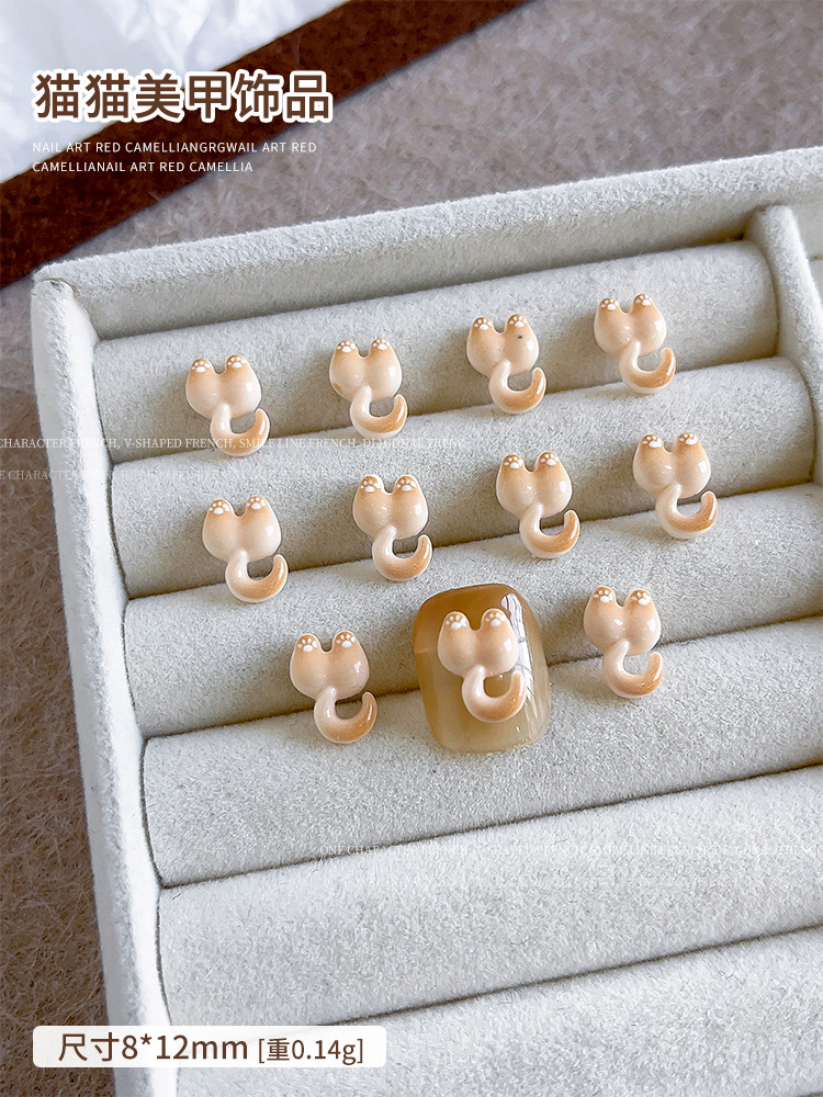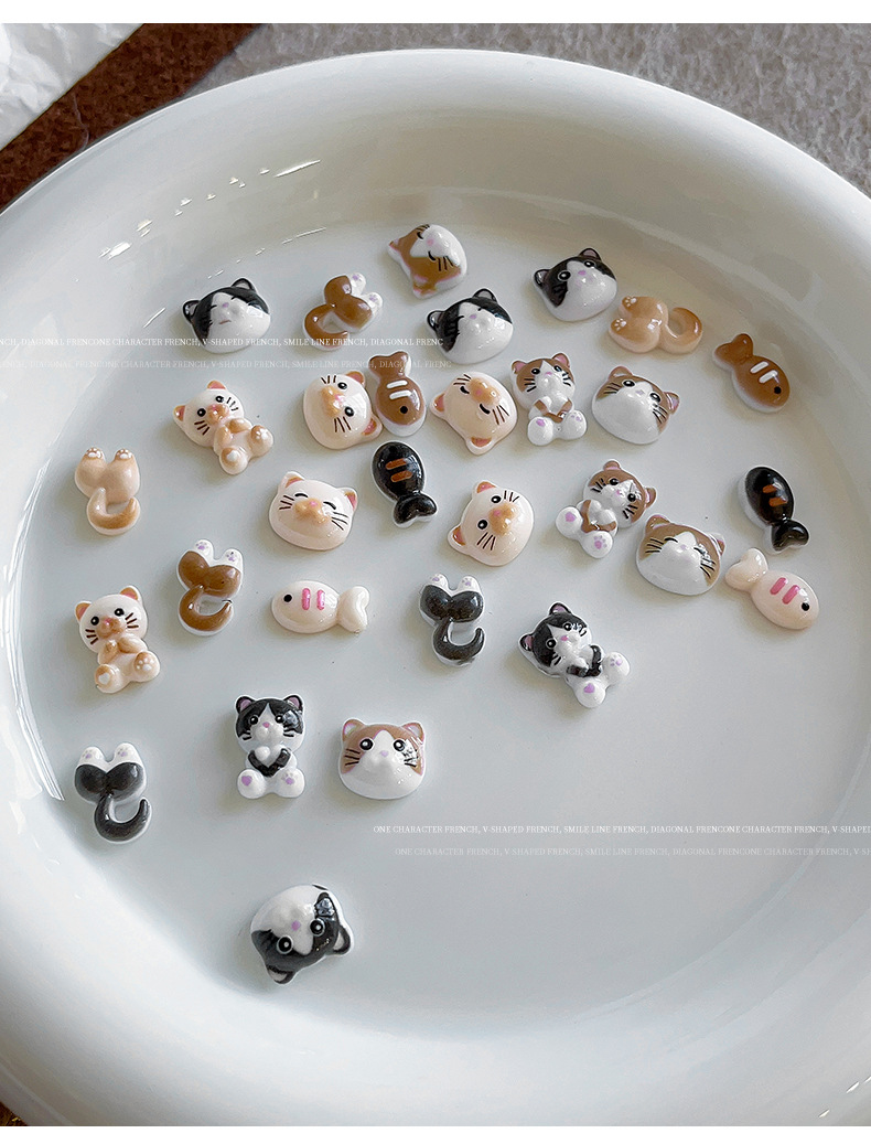 그물 빨간 고양이 네일 액세서리 작은 물고기 고양이 꼬리 슈퍼 귀여운 귀여운 귀여운 만화 조커 네일 장식 도매스토어 가기