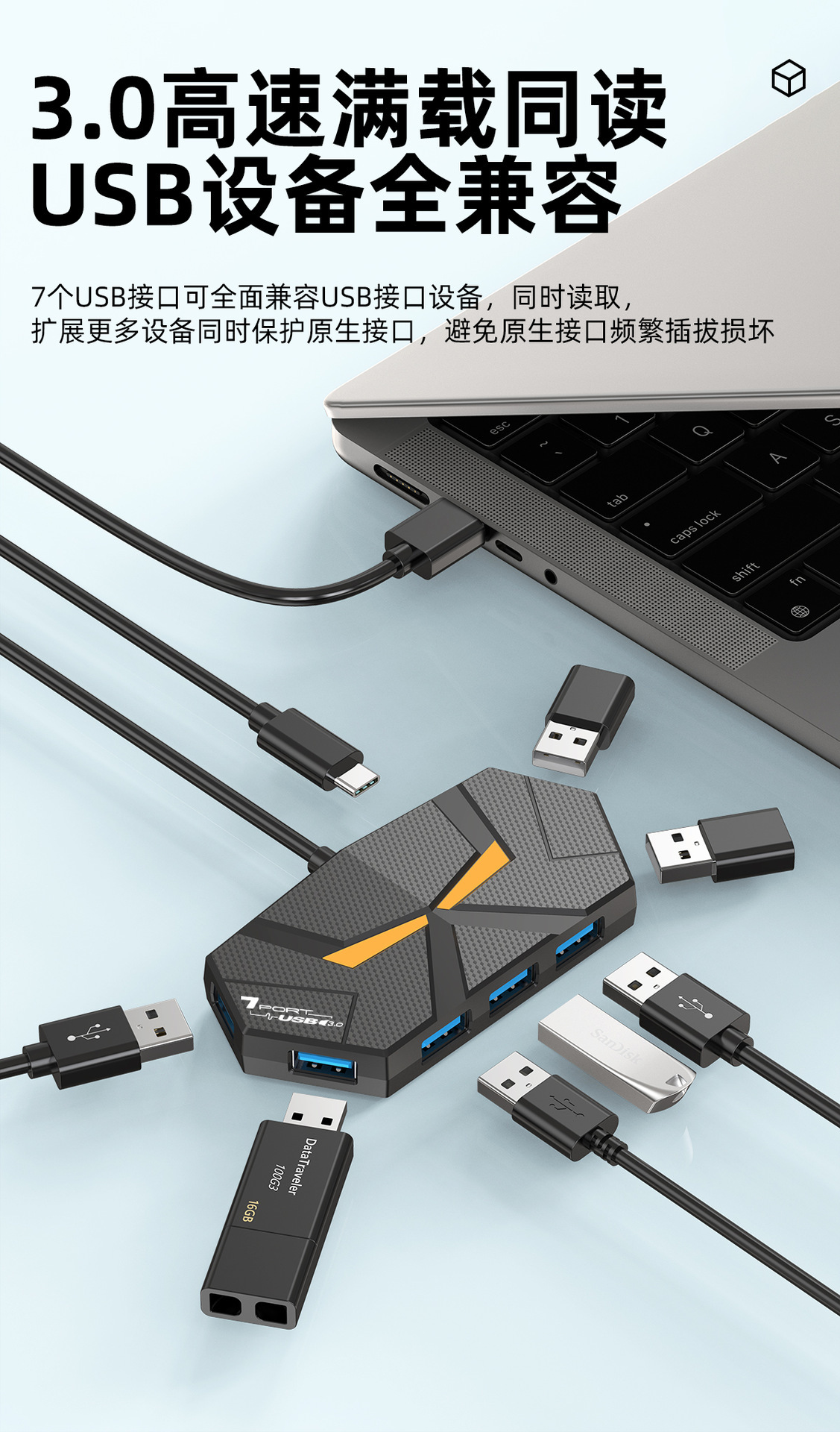 새로운 다채로운 분위기 램프 HUB4 7 3.0 고속 스플리터 확장 노트북 한 드래그 여러 차례스토어 가기