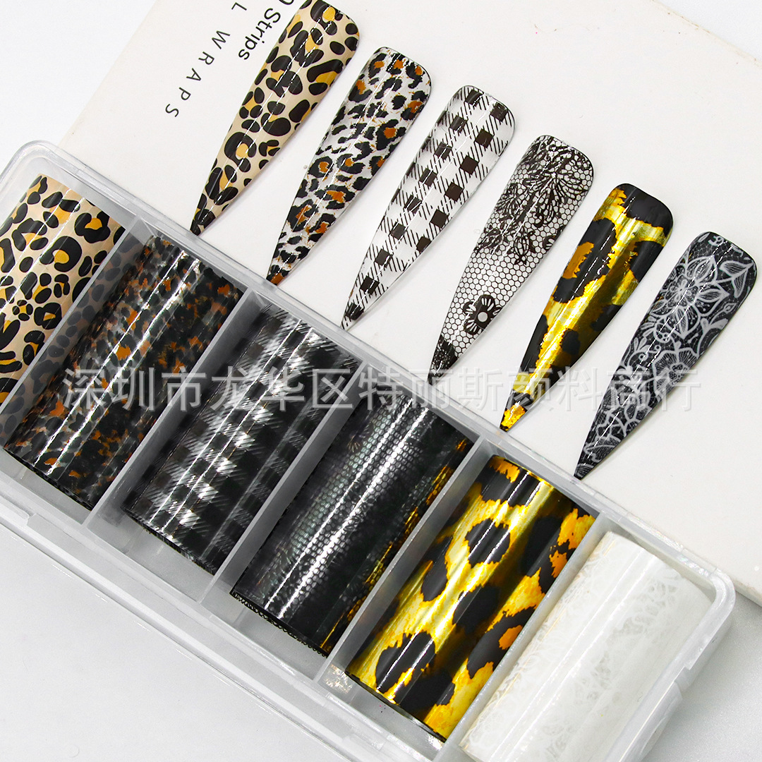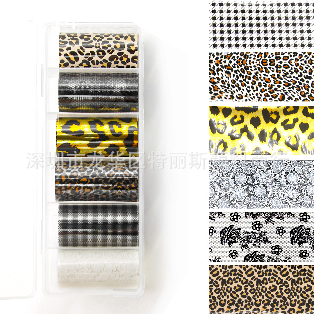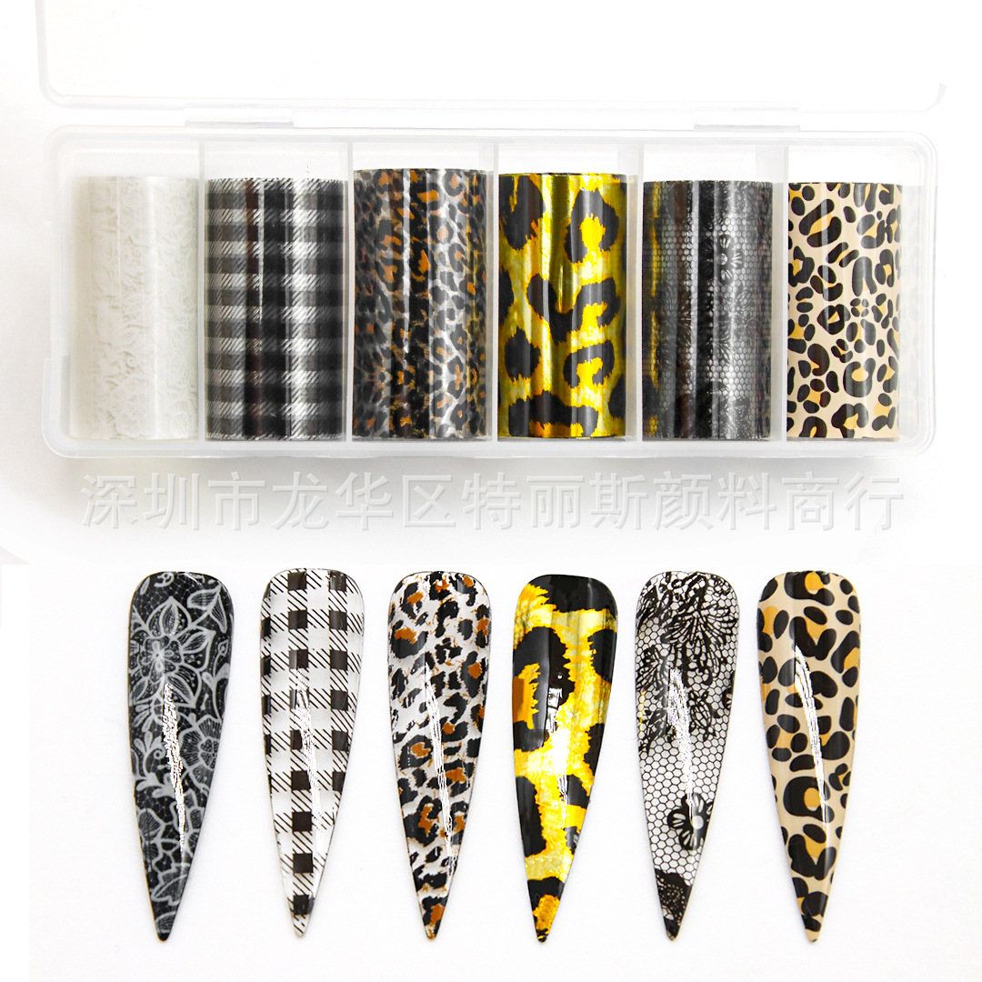 네일 아트 스타 종이 세트 박스 6 레오파드 나비 격자 무늬 스타 스티커 인터넷 핫 스파이스 네일 아트 전송 종이