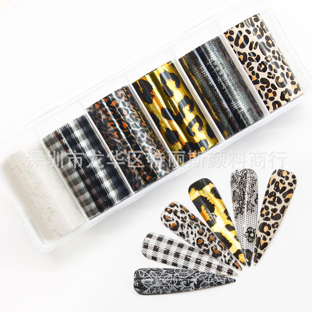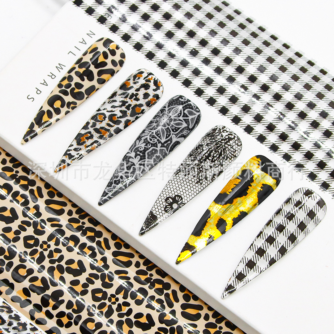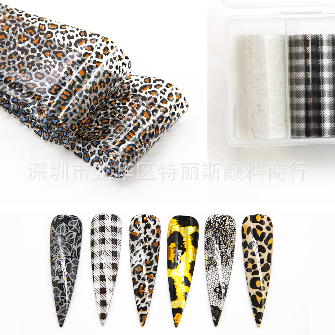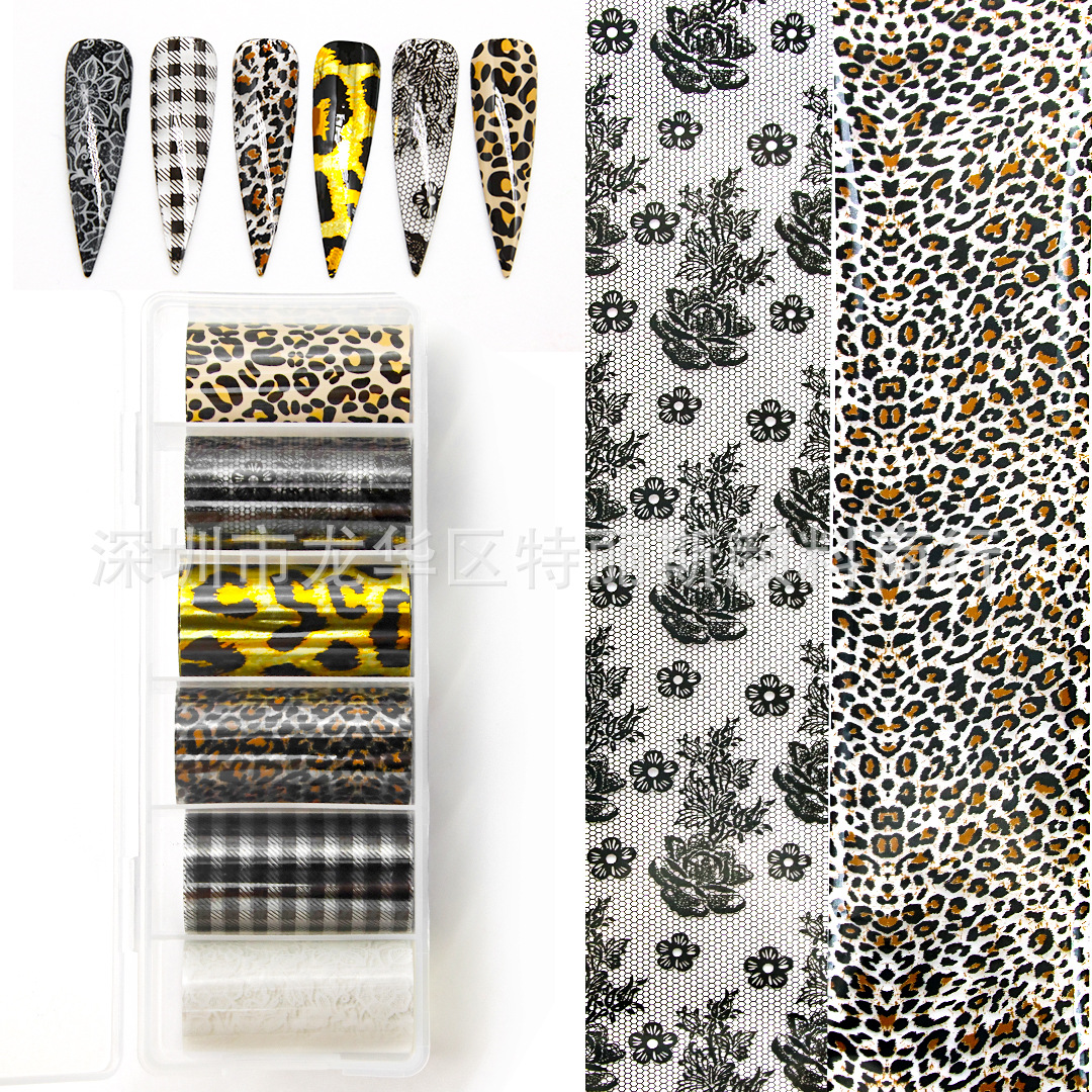 네일 아트 스타 종이 세트 박스 6 레오파드 나비 격자 무늬 스타 스티커 인터넷 핫 스파이스 네일 아트 전송 종이스토어 가기