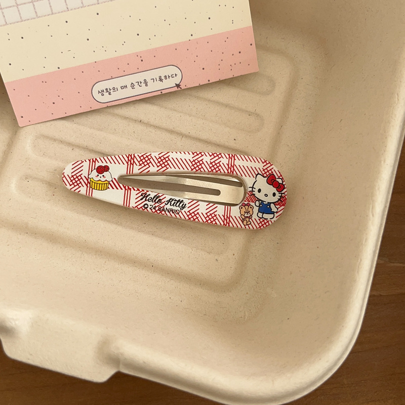걸리 하트 폴카 도트 체크 무늬 키티 시리즈 헤어 클립 달콤하고 다재다능한 브레이크 오프 클립 깨진 헤어 앞머리 클립 사이드 클립 헤어 클립