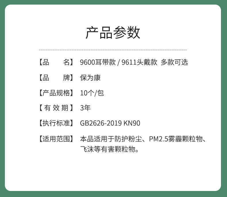 BaoWeiKang 9600 보호 마스크 방진 연삭 일회용 통기성 연삭 산업 먼지 입 및 코 접는 마스크