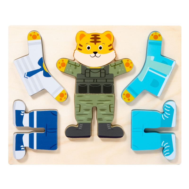 국경 간 어린이 3 차원 동물 변화 옷 나무 직소 퍼즐 드레싱 건물 블록 조기 교육 소년 소녀를위한 교육 장난감스토어 가기