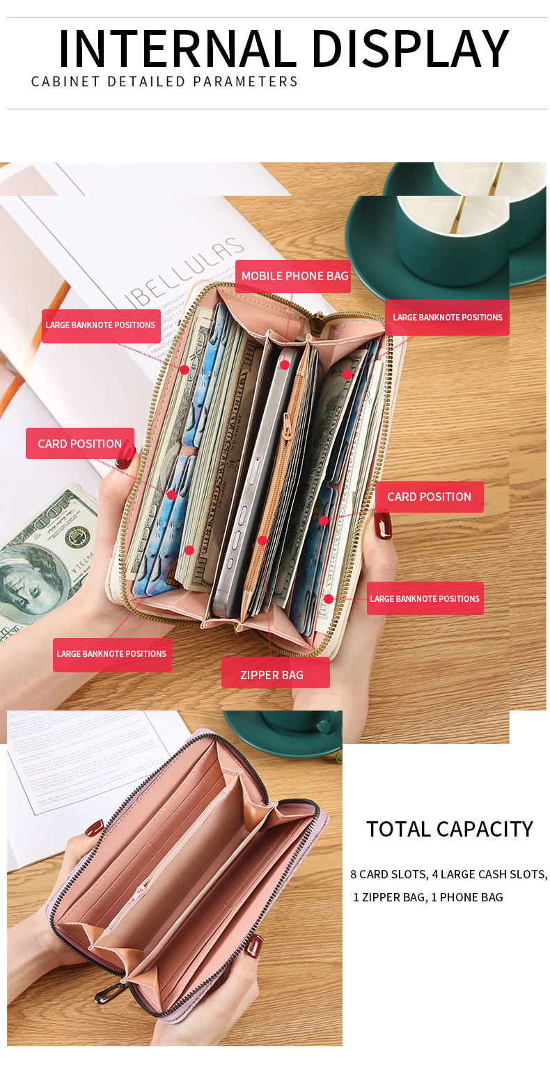 소스 공장 2025 새로운 여성 지갑 긴 멀티 카드 슬롯 동전 지갑 지갑 지퍼 클러치 백 휴대 전화 가방스토어 가기