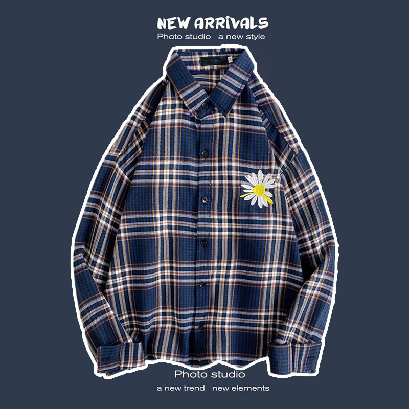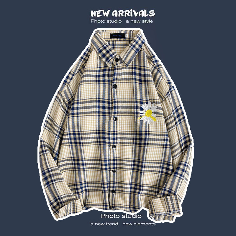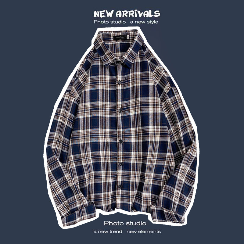 봄과 가을 셔츠 남자 유행 캐주얼 느슨한 긴팔 셔츠 홍콩 스타일 올 매치 커플의 빈티지 격자 자켓스토어 가기
