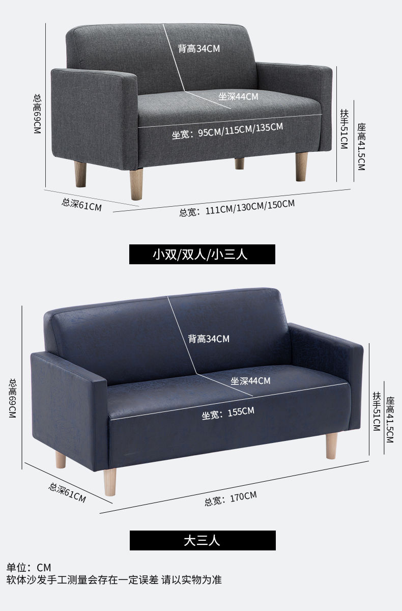 북유럽 심플 소파 작은 아파트 거실 침실 임대 방 의류 가게 더블 3 인 오일 스킨 경제 1 인