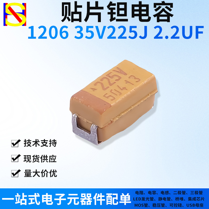 TAJA225K035RNJ SMD 탄탈 커패시터 1206 35V2.2UF 원스톱 전자 부품스토어 가기