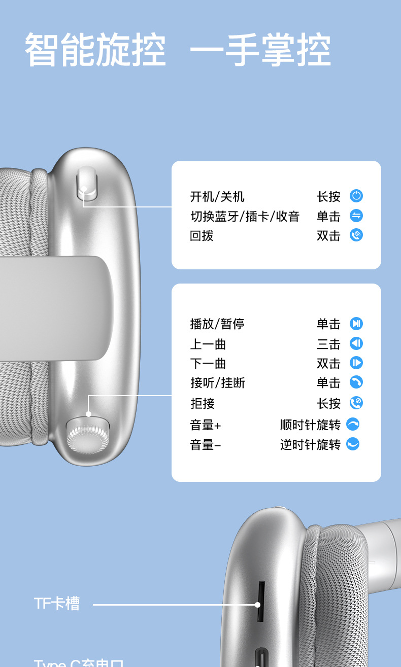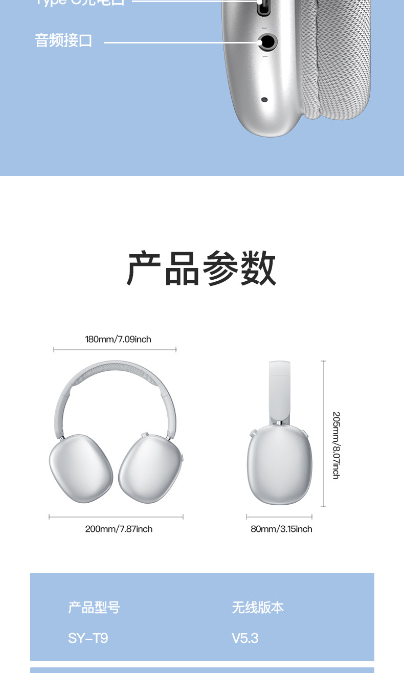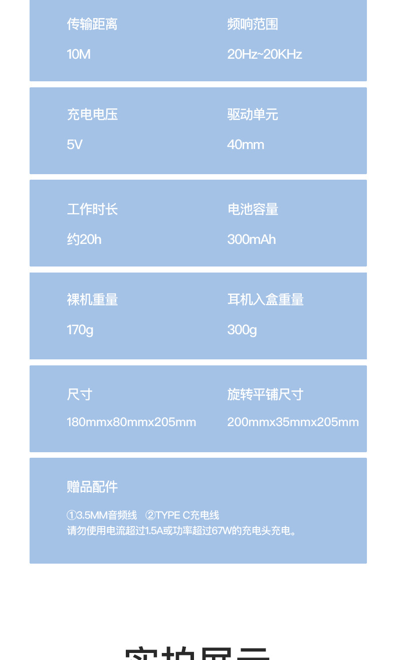内含:Type-C充电线,AUX音频线,说明书,吸塑,彩盒