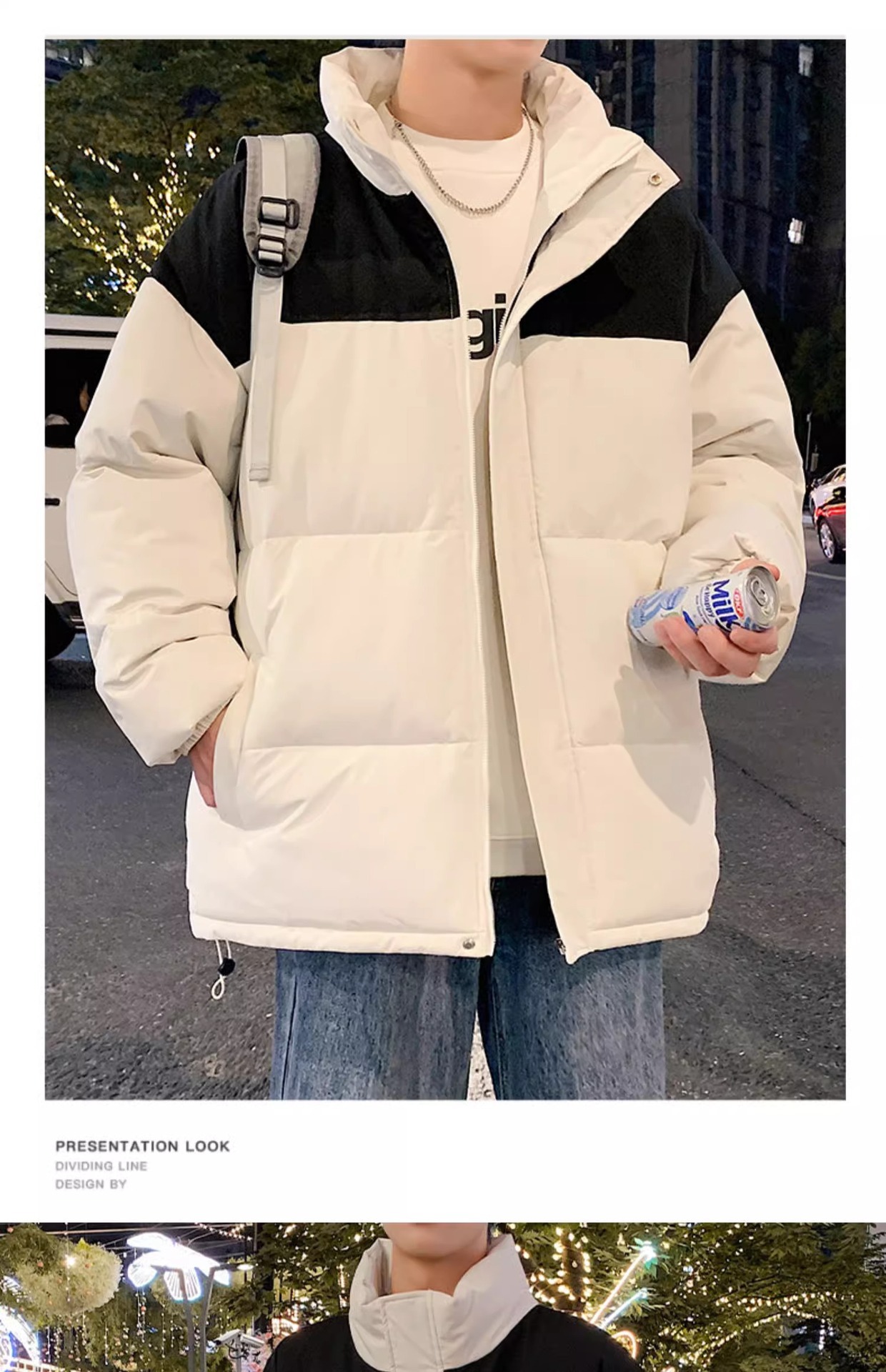 NASA 미국 컬러 매칭면 패딩 재킷 남성용 겨울 2024 새로운 냉간 두꺼운 따뜻한 캐주얼 코튼 코트 코트 코트스토어 가기