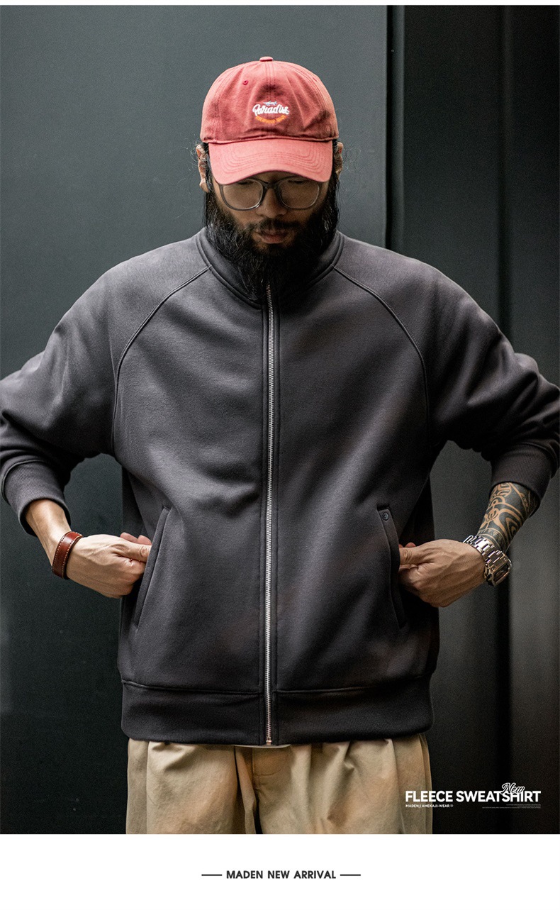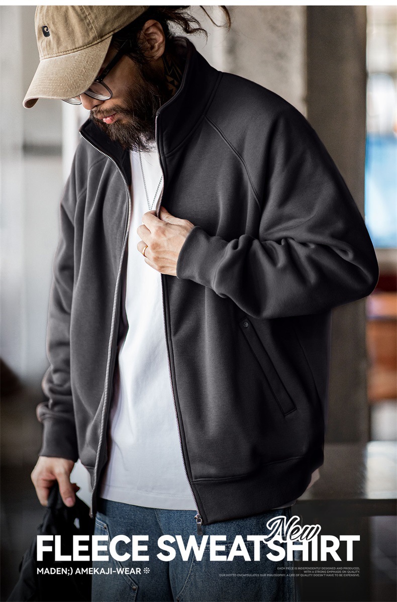 매든 툴링 미국 캐주얼 폴라 플리스 카디건 스웨터 학술 스타일 칼라 기모 스포츠 지퍼 재킷 남자 가을스토어 가기