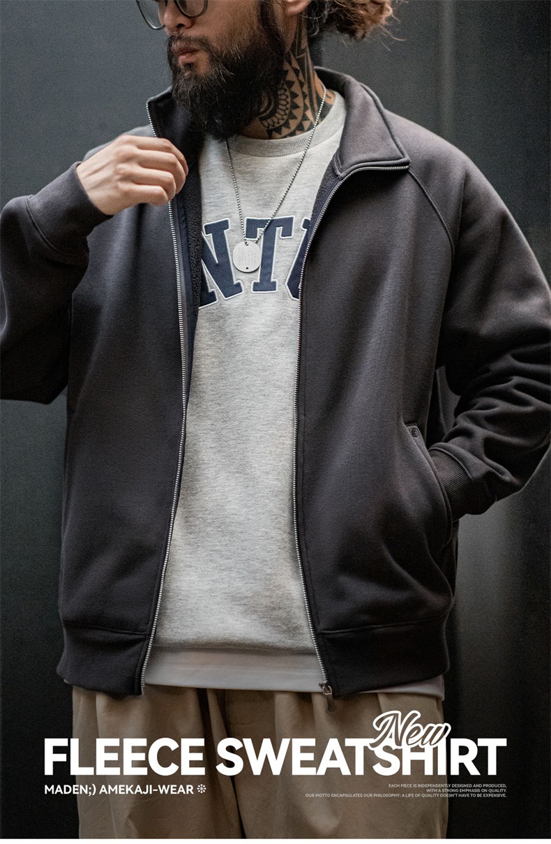 매든 툴링 미국 캐주얼 폴라 플리스 카디건 스웨터 학술 스타일 칼라 기모 스포츠 지퍼 재킷 남자 가을