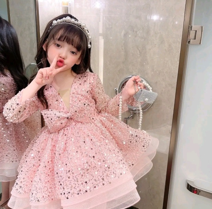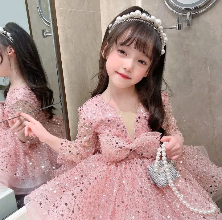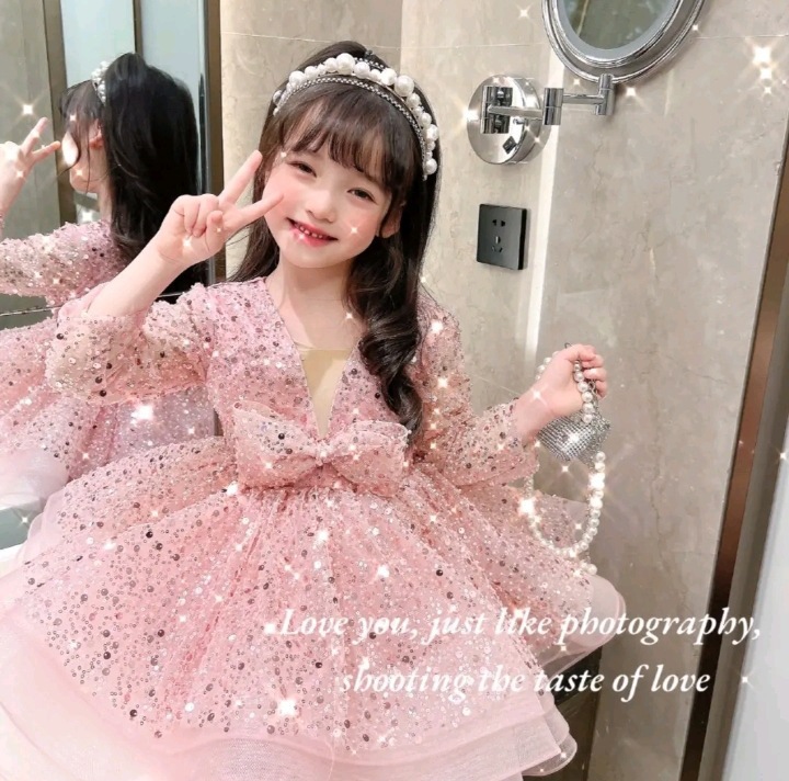 소녀 원피스 AliExpress 국경 핑크 Sequins Girls 'Pompon 원피스 어린이 긴팔 한 살짜리 원피스 공주 원피스스토어 가기