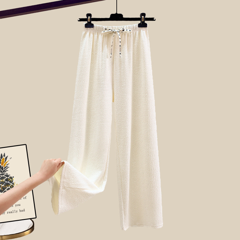 • 화이트 스웨터 + 살구 와이드 팬츠 투피스 세트