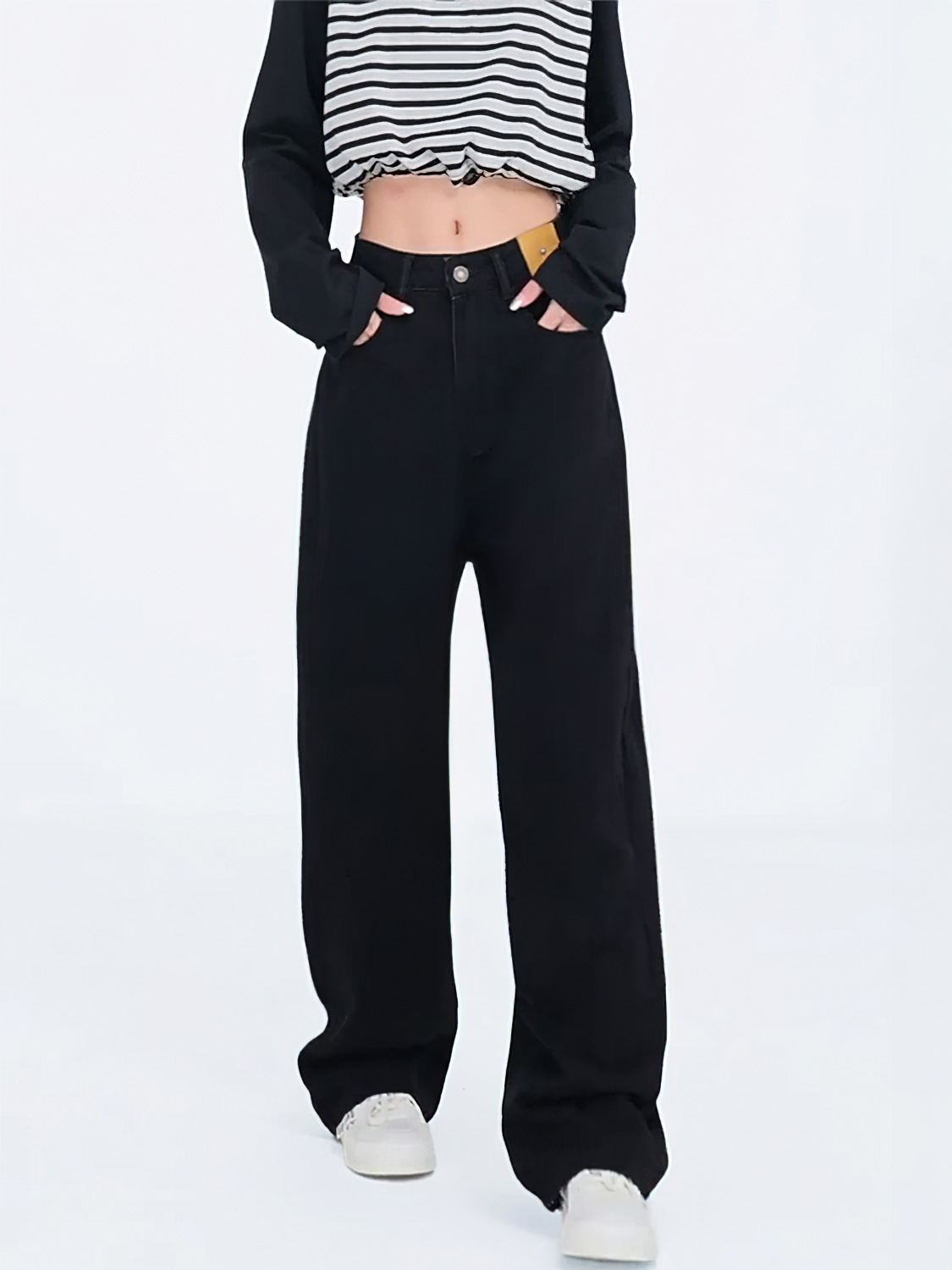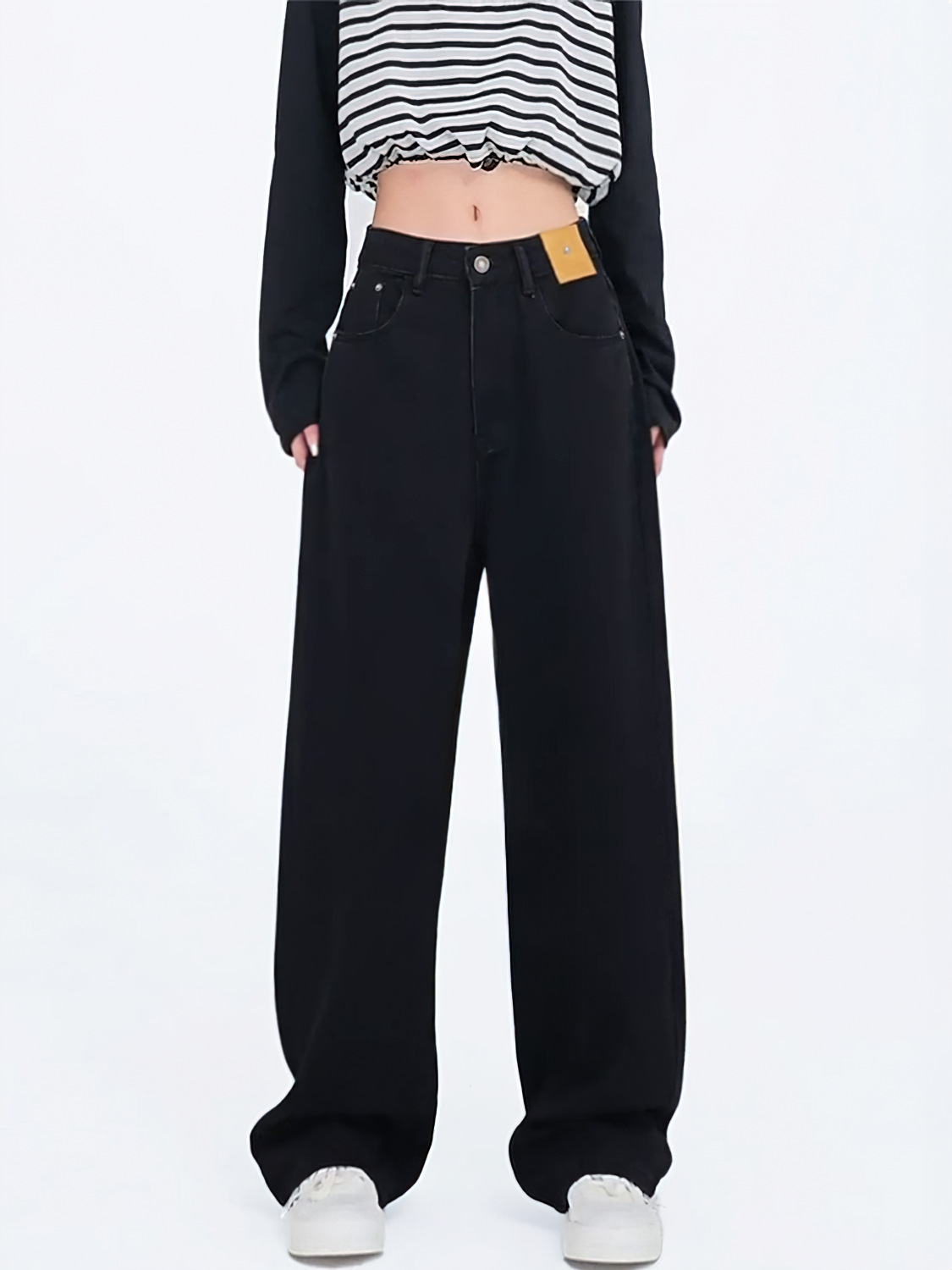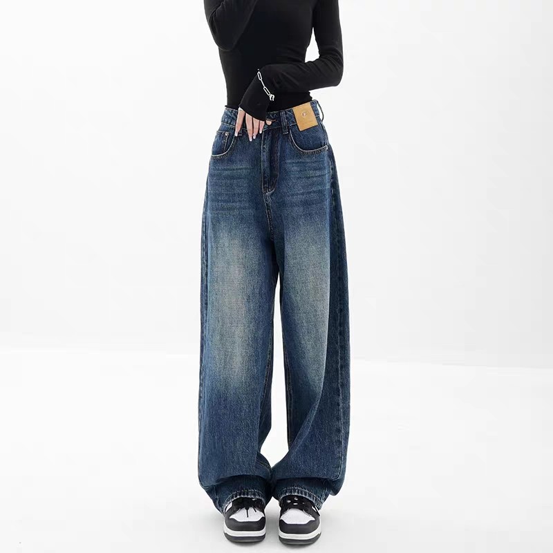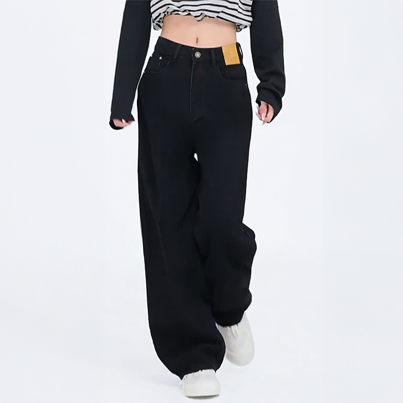 배 모양의 검은 직선 다리 청바지 여성의 가을 새 플러스 사이즈 통통녀 높은 허리 느슨한 슬리밍 넓은 다리 바지스토어 가기