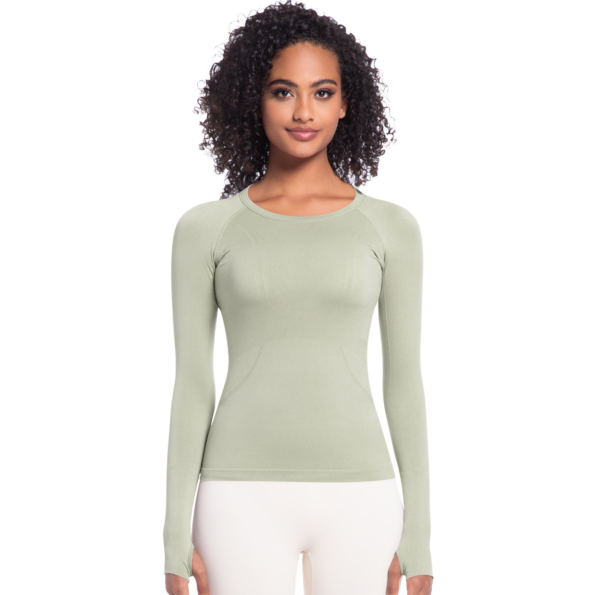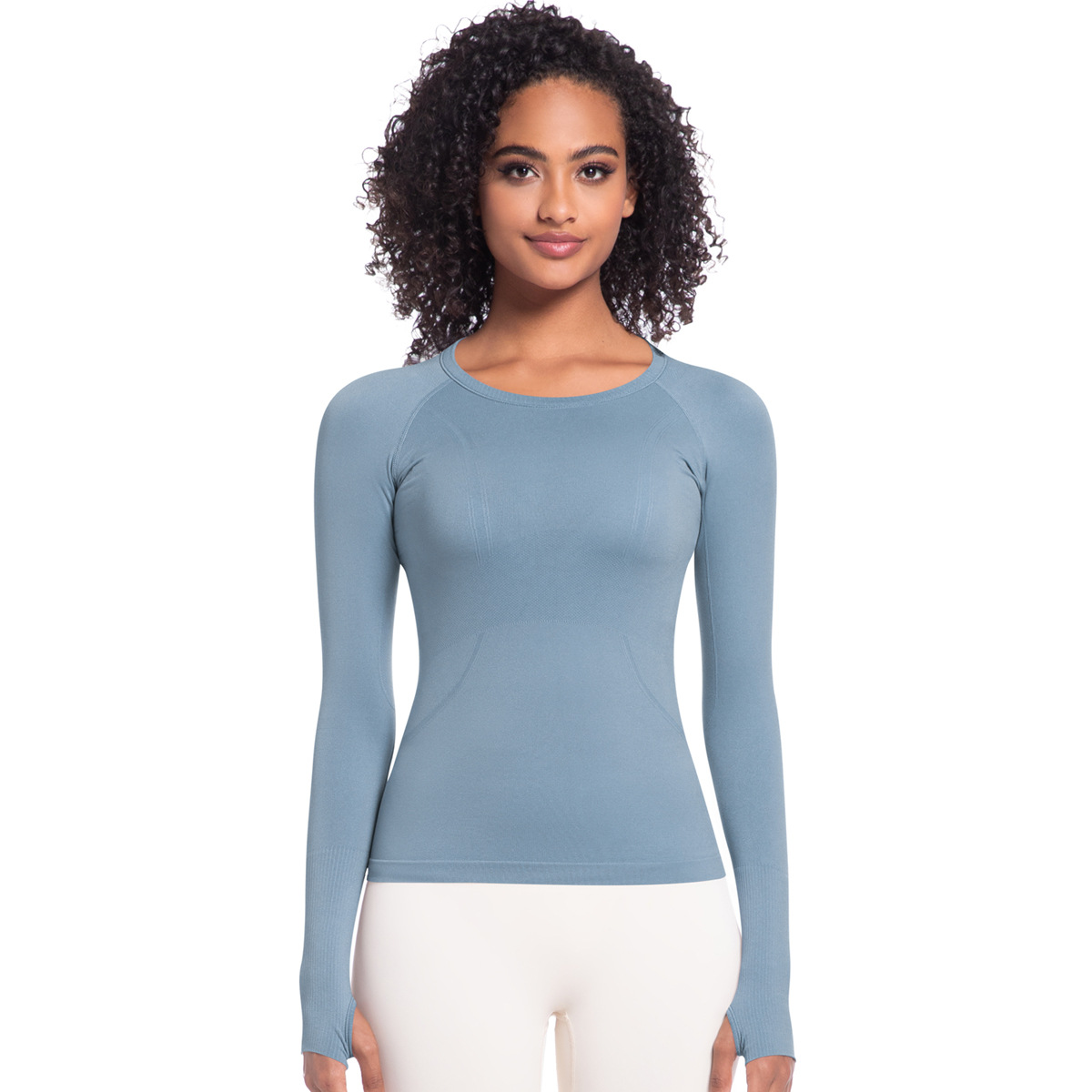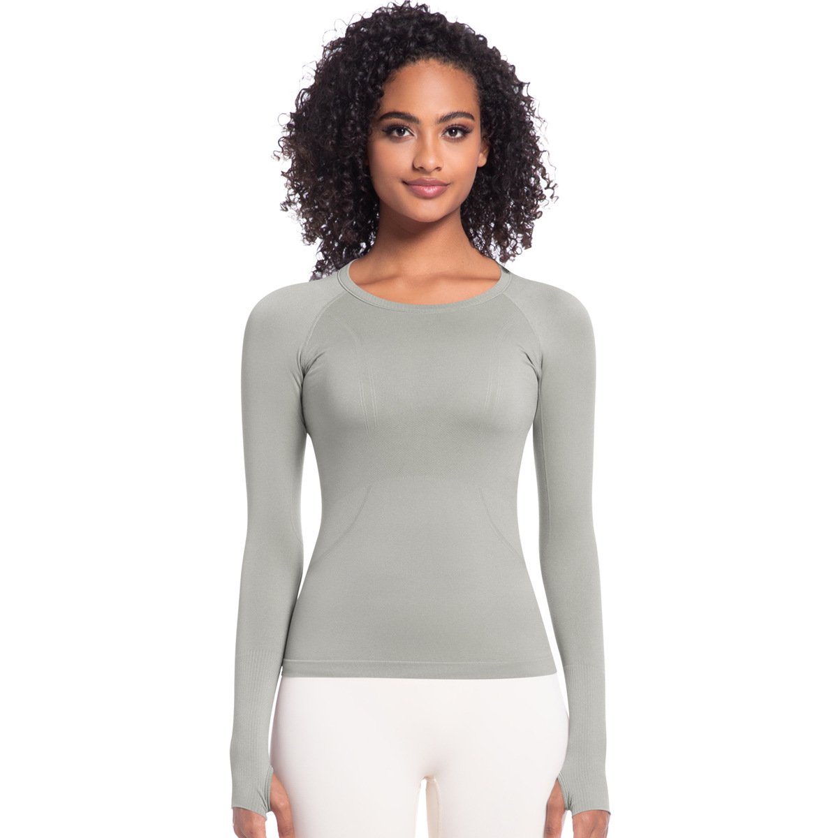 새로운 원활한 원피스 짠 요가 세트 높은 탄력 긴 소매 통기성 빠른 건조 탑 달리기 피트니스 스포츠 티셔츠스토어 가기