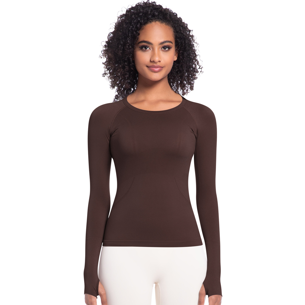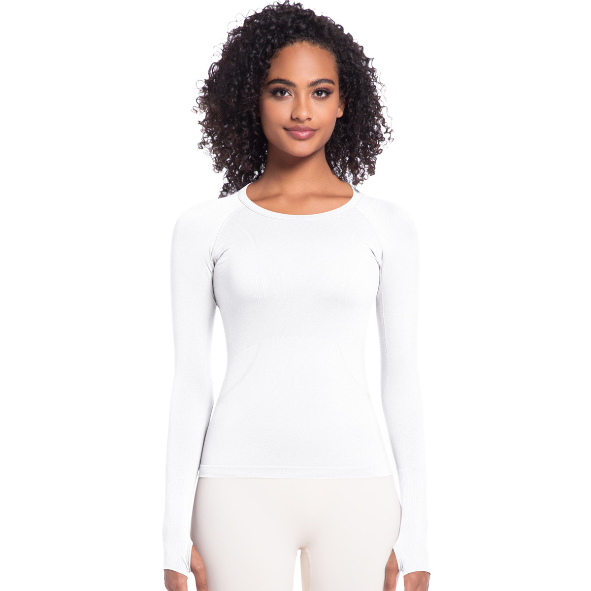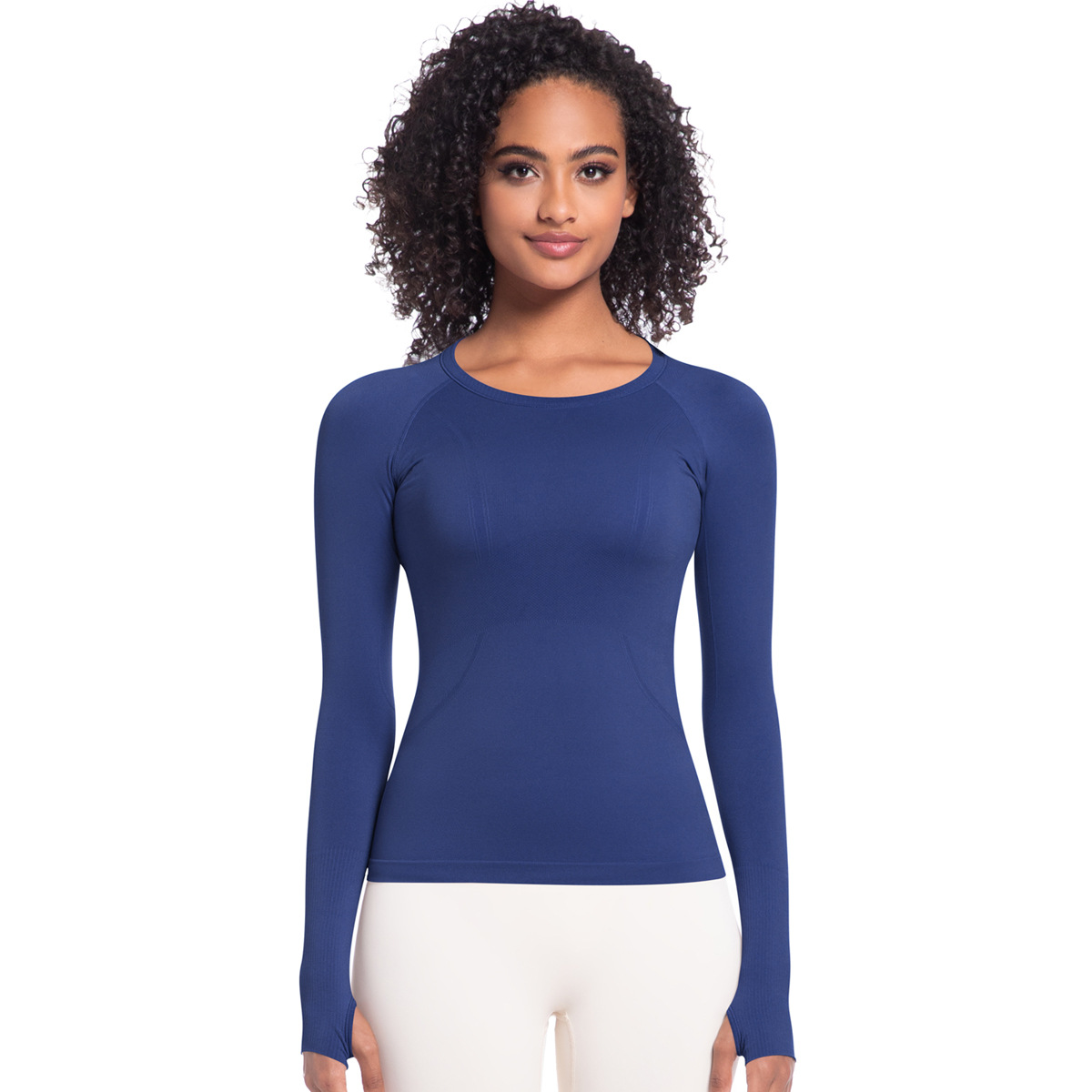 새로운 원활한 원피스 짠 요가 세트 높은 탄력 긴 소매 통기성 빠른 건조 탑 달리기 피트니스 스포츠 티셔츠스토어 가기