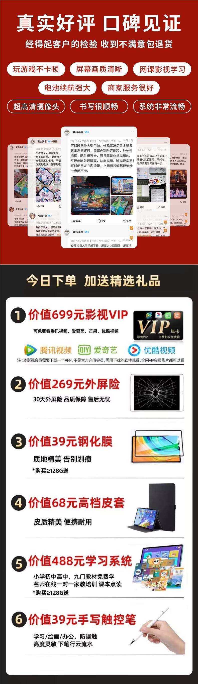 [공식 정품] 태블릿 PC 2024 학생들이 온라인으로 배울 수있는 새로운 고화질 전체 화면 눈 보호 특별 수준